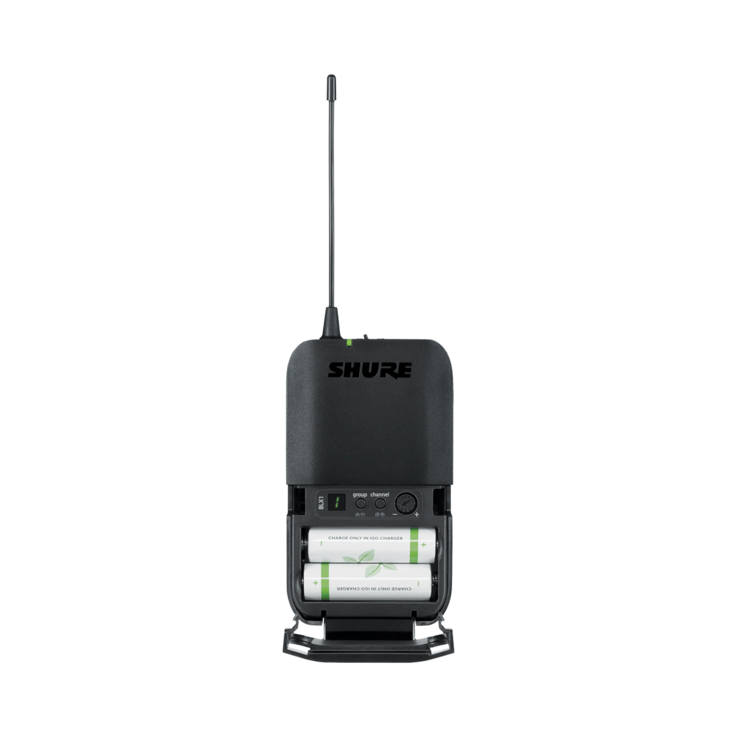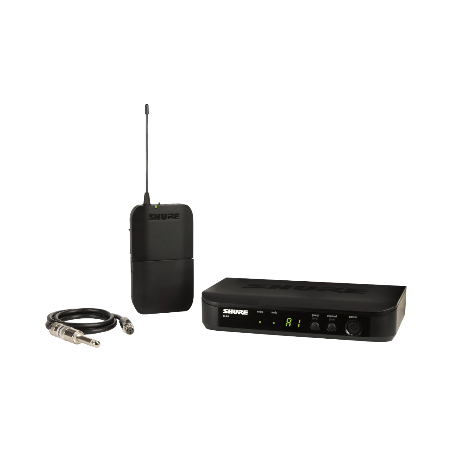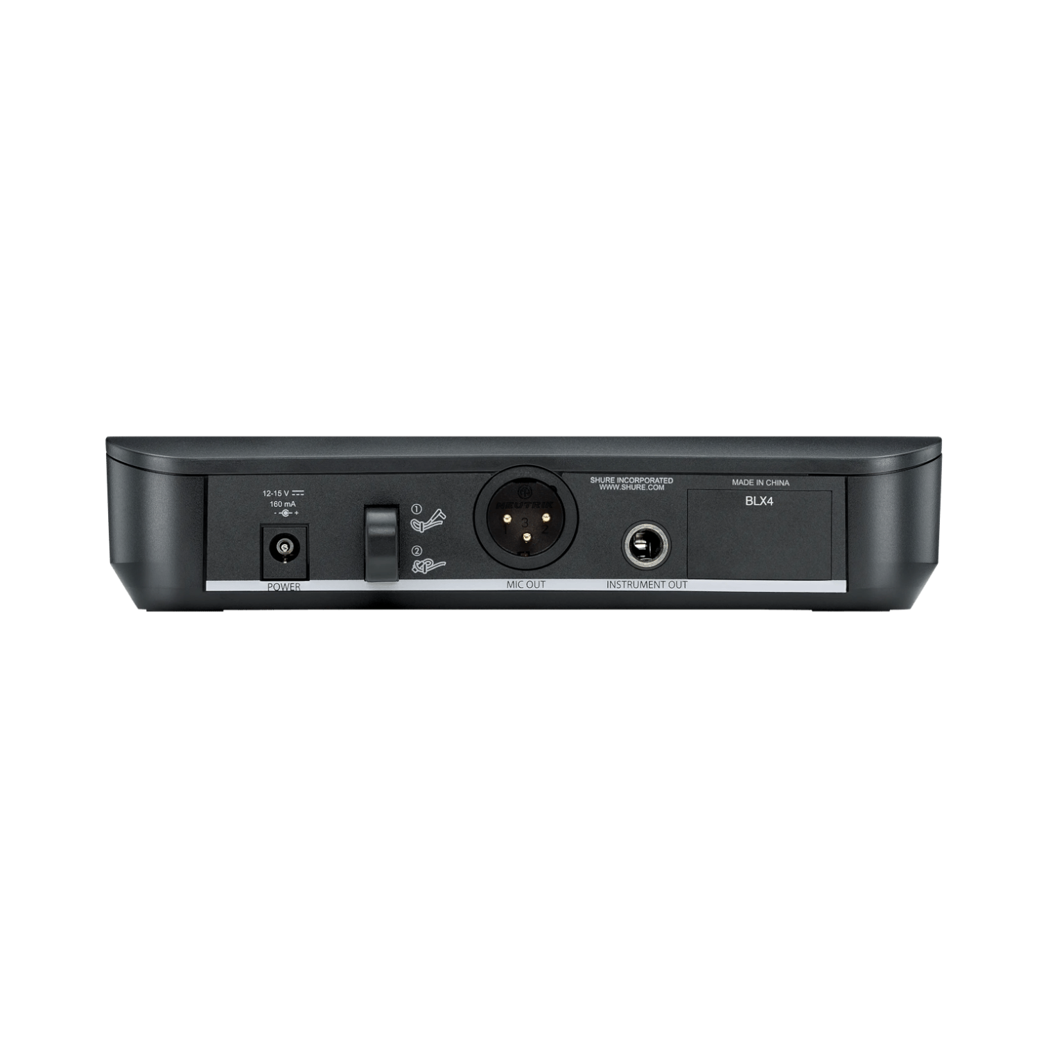 The Shure BLX14-H10 is a wireless guitar system designed to give guitar and bass players the freedom to move on stage without the hassle of cables. Operating within the H10 frequency band from 542 to 572 MHz, it offers a reliable wireless range of up to 300 feet and delivers clear, consistent audio performance. The system includes a compact BLX4 tabletop receiver and a BLX1 bodypack transmitter that connects easily to any standard quarter-inch instrument output.