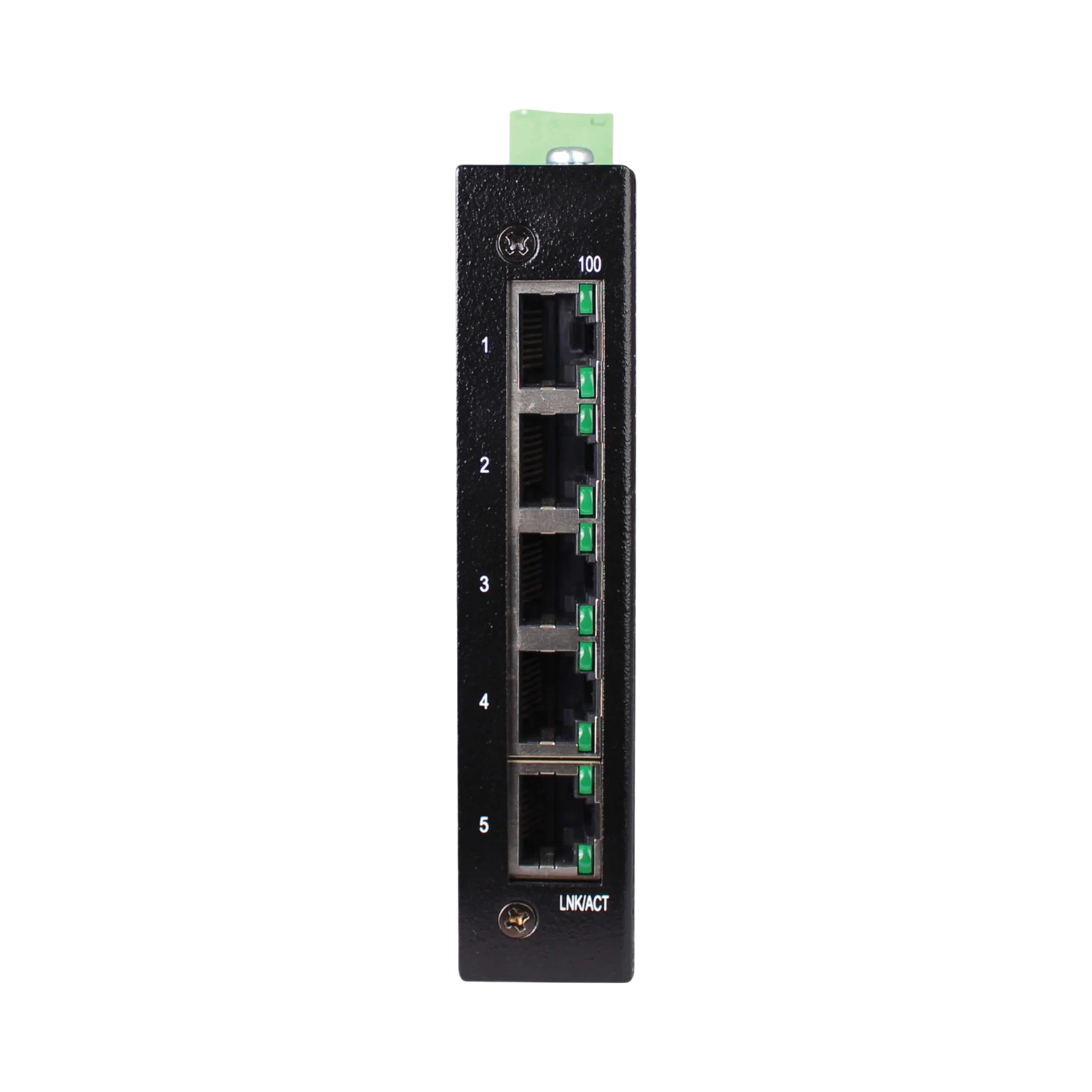 This switch supports standard Ethernet protocols and auto-negotiates speed and duplex on all five RJ45 ports, making it compatible with a wide range of industrial devices and network equipment. Its unmanaged design means it requires no software configuration, allowing it to integrate seamlessly into existing networks without additional setup. The rugged metal enclosure and wide operating temperature range ensure stable performance in environments where typical office switches would fail.