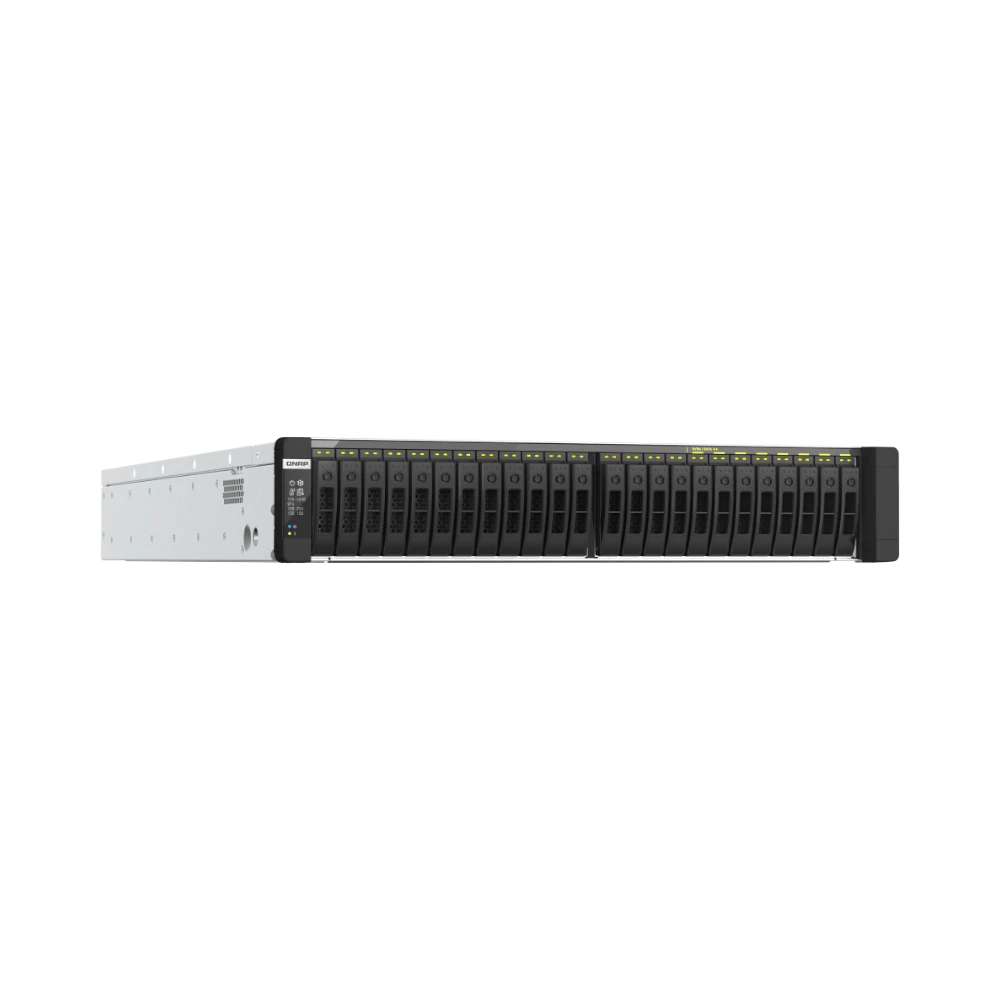 The QNAP TDS-H2489FU-4309Y-64G-US is a high-performance NAS enclosure designed to house twenty-four U.2 NVMe SSDs in a standard rackmount chassis, delivering the speed and capacity needed for demanding workloads. Powered by dual Intel Xeon Silver 4309Y processors with eight cores each and equipped with 64 GB of ECC DDR4 memory expandable up to 1 TB, it handles virtualization, large file transfers, and critical backup tasks efficiently. Its all-flash storage architecture and advanced networking options make it a strong choice for environments requiring fast, reliable data access and protection.