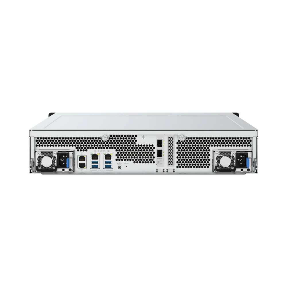 This NAS enclosure offers a comprehensive set of network interfaces to handle diverse data traffic efficiently. The dual 25 GbE SFP28 ports are ideal for connecting to high-speed switches or servers, supporting heavy data transfers typical in media production or virtualization environments. The four 2.5 GbE RJ45 ports provide additional connectivity for management tasks or less bandwidth-intensive file sharing. Expansion slots allow integration of further network or storage controllers, ensuring compatibility with evolving infrastructure needs.