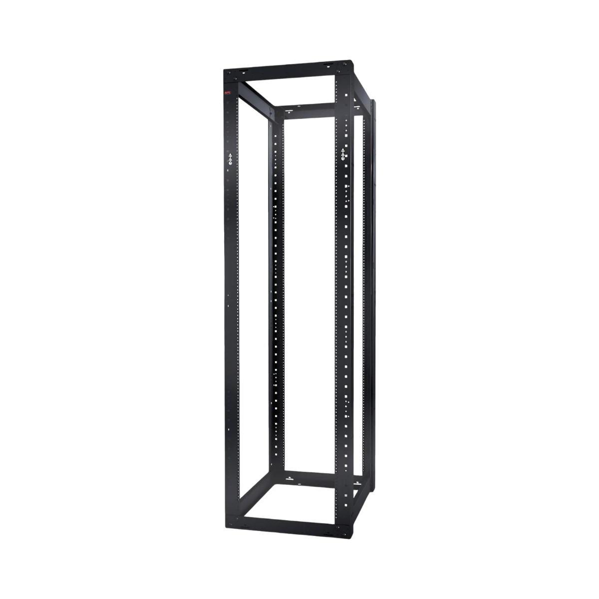 The APC AR204A is a four-post open frame rack designed to securely house servers, switches, and telecom equipment with 44U of usable height. It supports a static load of up to 2000 lbs, providing a stable platform for dense hardware setups. Its open design ensures easy access to cables and ports from all sides while promoting efficient airflow to help maintain optimal operating temperatures in various IT environments.