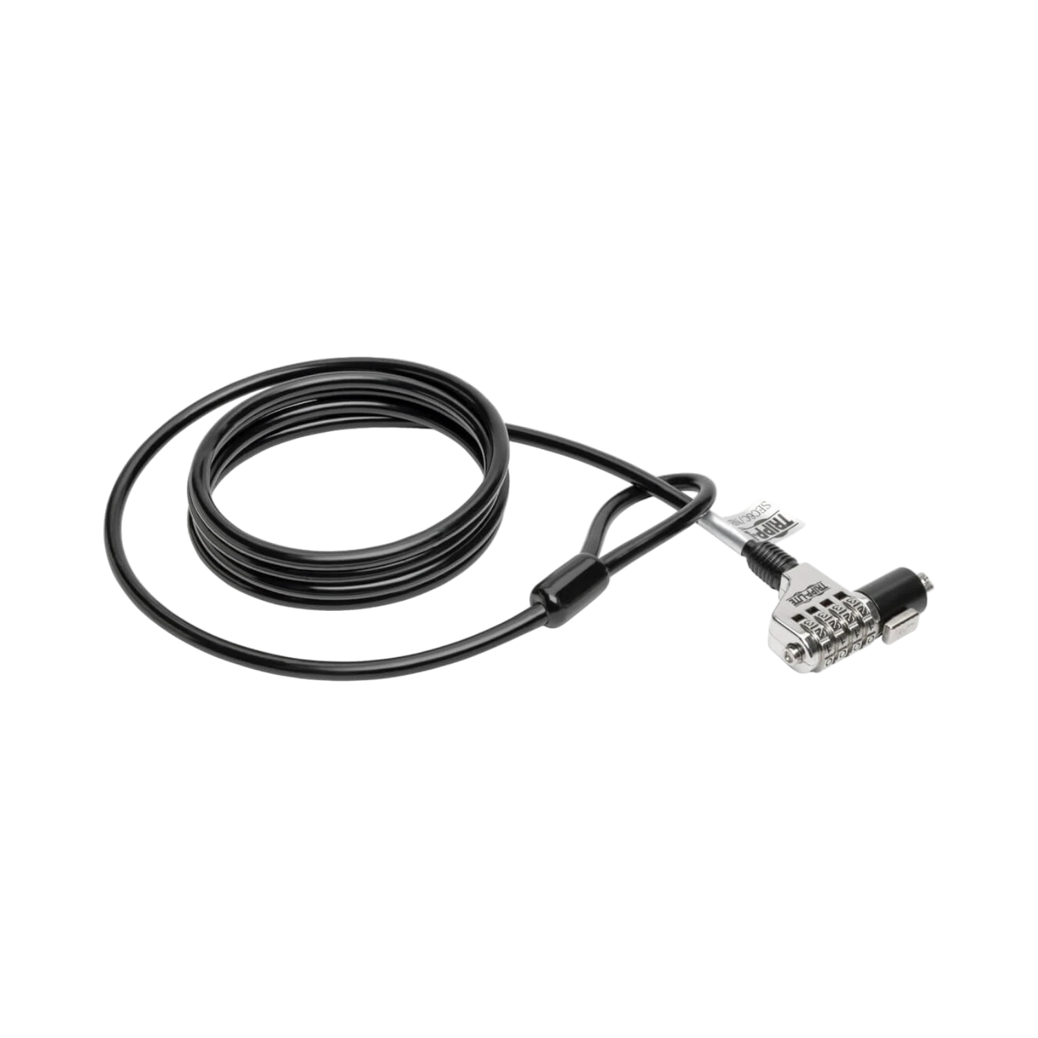 The Tripp Lite SEC6C is a security lock designed to protect laptops, docking stations, and similar peripherals from theft by physically anchoring them to a fixed object. Featuring a six-foot steel cable coated with PVC to prevent scratches, it secures devices by locking into the standard security slot found on most notebooks and docks. The lock uses a four-digit combination code that can be reset easily without tools, making it a flexible and convenient solution for securing equipment in offices, classrooms, libraries, and other shared environments.