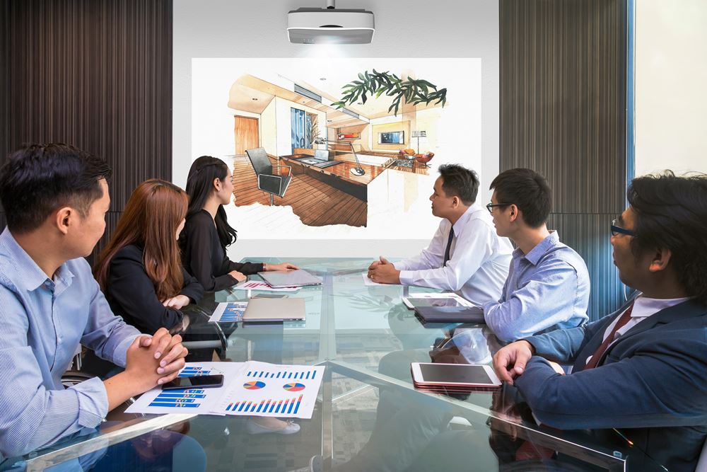 - Ultra-short throw ratio of 0.25:1 allows large images from very close distances, reducing shadows and obstructions.