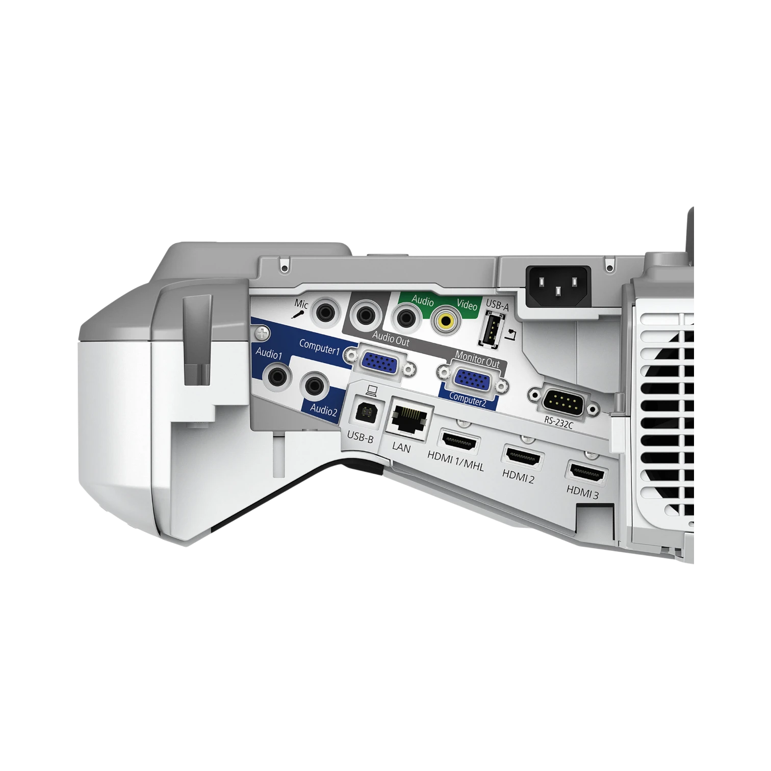 The Epson V11H744520 fits well in educational settings such as BYOD classrooms and training rooms where space is limited and multiple users need to share content easily. Its ultra-short throw capability and bright image output make it a strong choice for huddle areas and small conference rooms where presenters stand close to the screen. The built-in speaker and long lamp life further support environments that require reliable, low-maintenance projection solutions.