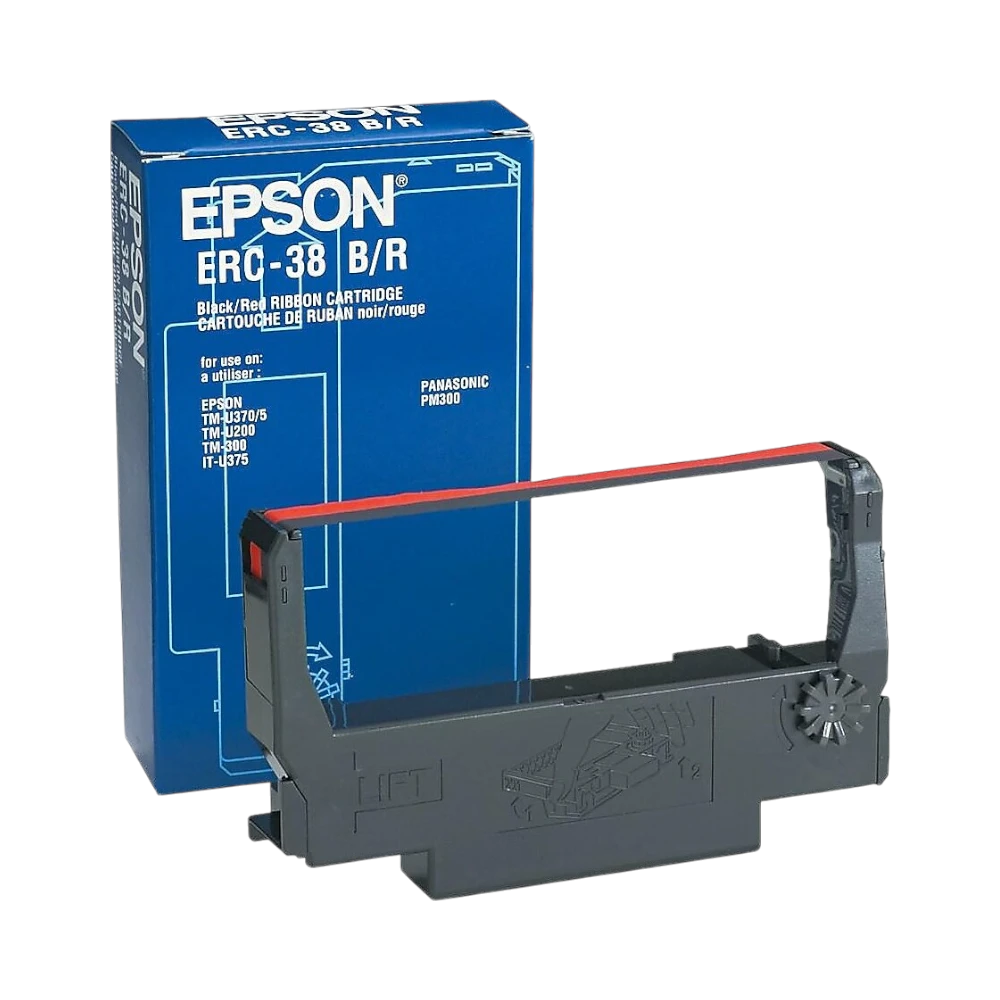 The Epson ERC-38BR is a dual-color print ribbon designed for impact printers and cash registers that accept the Epson ERC-38 format, including the TM-U220 and TM-U230 series. It provides black ink for standard printing and red ink for highlighting negative amounts or special notices, making receipts, journals, and reports easier to read and interpret quickly. This ribbon is ideal for retail counters, hospitality desks, and other busy service environments where clear, professional printing is essential.