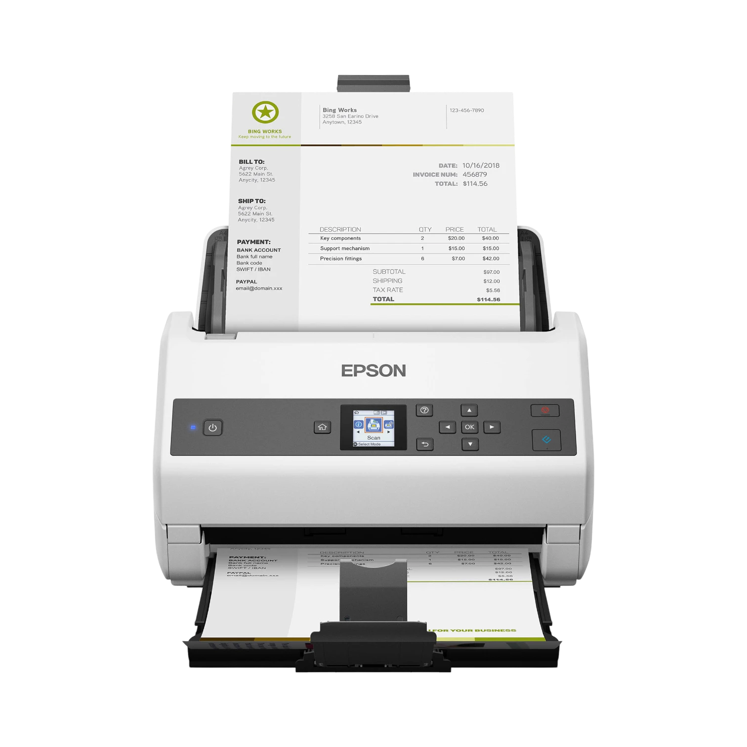 - Single pass duplex scanning that captures both sides of a page simultaneously, saving time and effort.