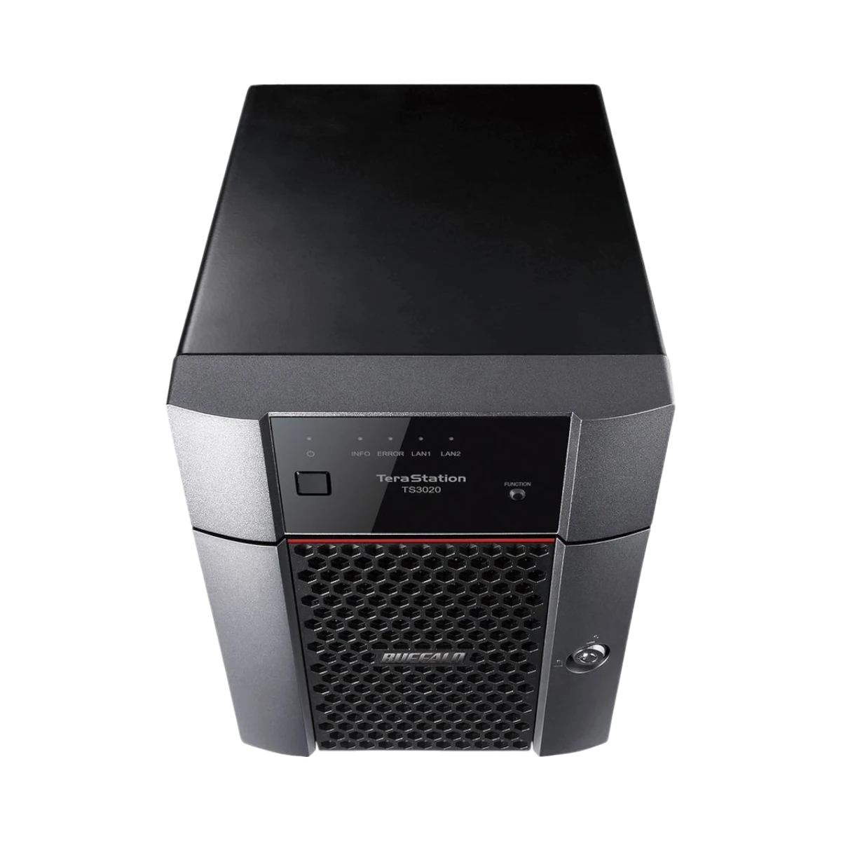The Buffalo TS3420DN0402 is a four-bay network attached storage (NAS) server designed to provide reliable and expandable centralized storage for small offices, creative studios, and branch locations. It comes partially populated with two 2 TB NAS-grade hard drives, offering 4 TB of storage capacity out of the box, with two additional bays available for future expansion. Powered by a 1.4 GHz quad-core processor and 1 GB of DDR3 memory, it handles multiple simultaneous tasks such as file sharing, media streaming, and automated backups efficiently. Dual Ethernet ports support both Gigabit and 2.5 Gigabit speeds, allowing flexible integration with current and future network infrastructures.