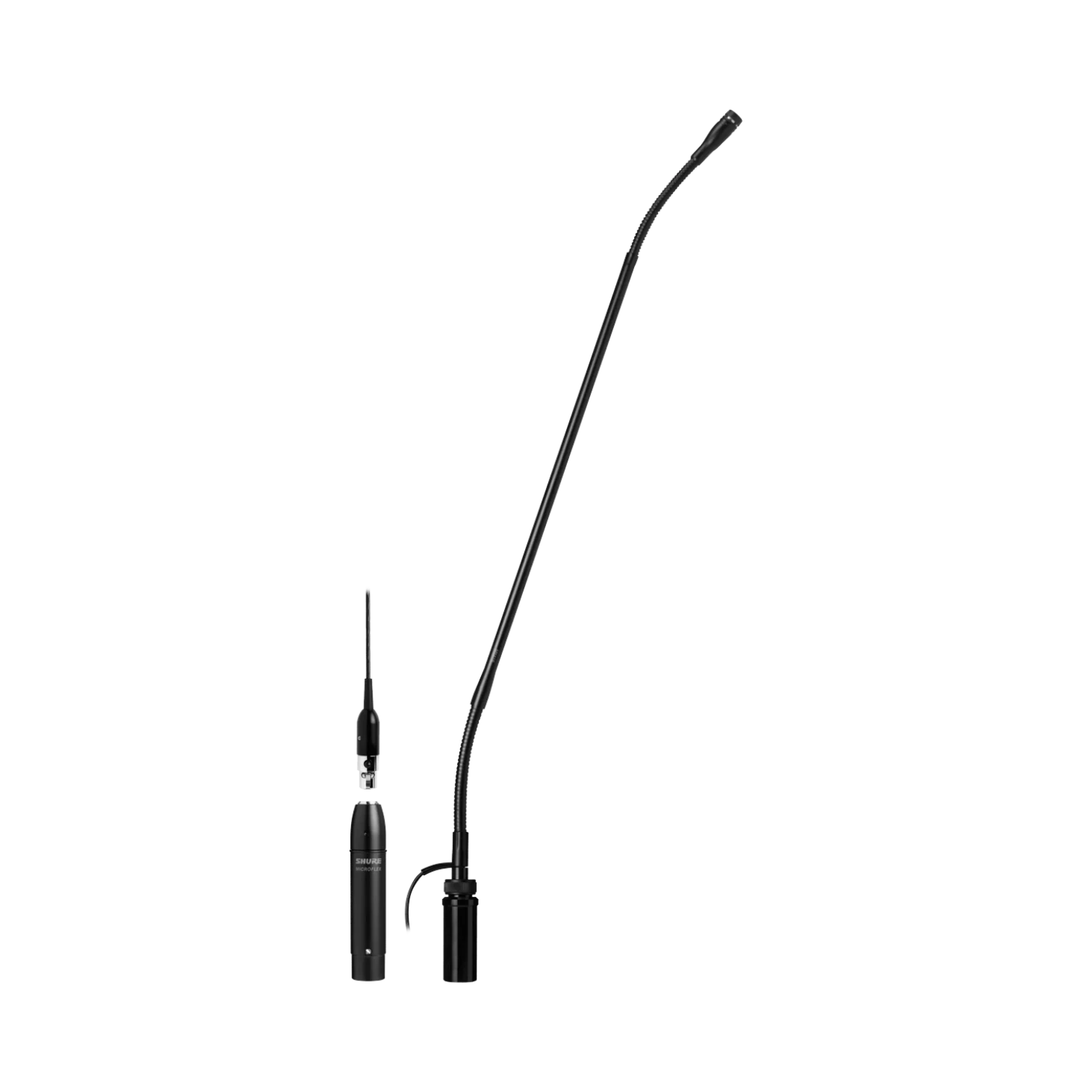 The Shure MX418SE/C is an 18-inch cardioid gooseneck microphone designed to deliver clear and detailed spoken-word audio at podiums, lecterns, and conference tables. It is ideal for environments such as council chambers, training rooms, and houses of worship where voice clarity and presence are essential. The microphone features interchangeable capsules that allow you to select the pickup pattern best suited to your room’s acoustics, ensuring optimal sound capture for various speaking scenarios.