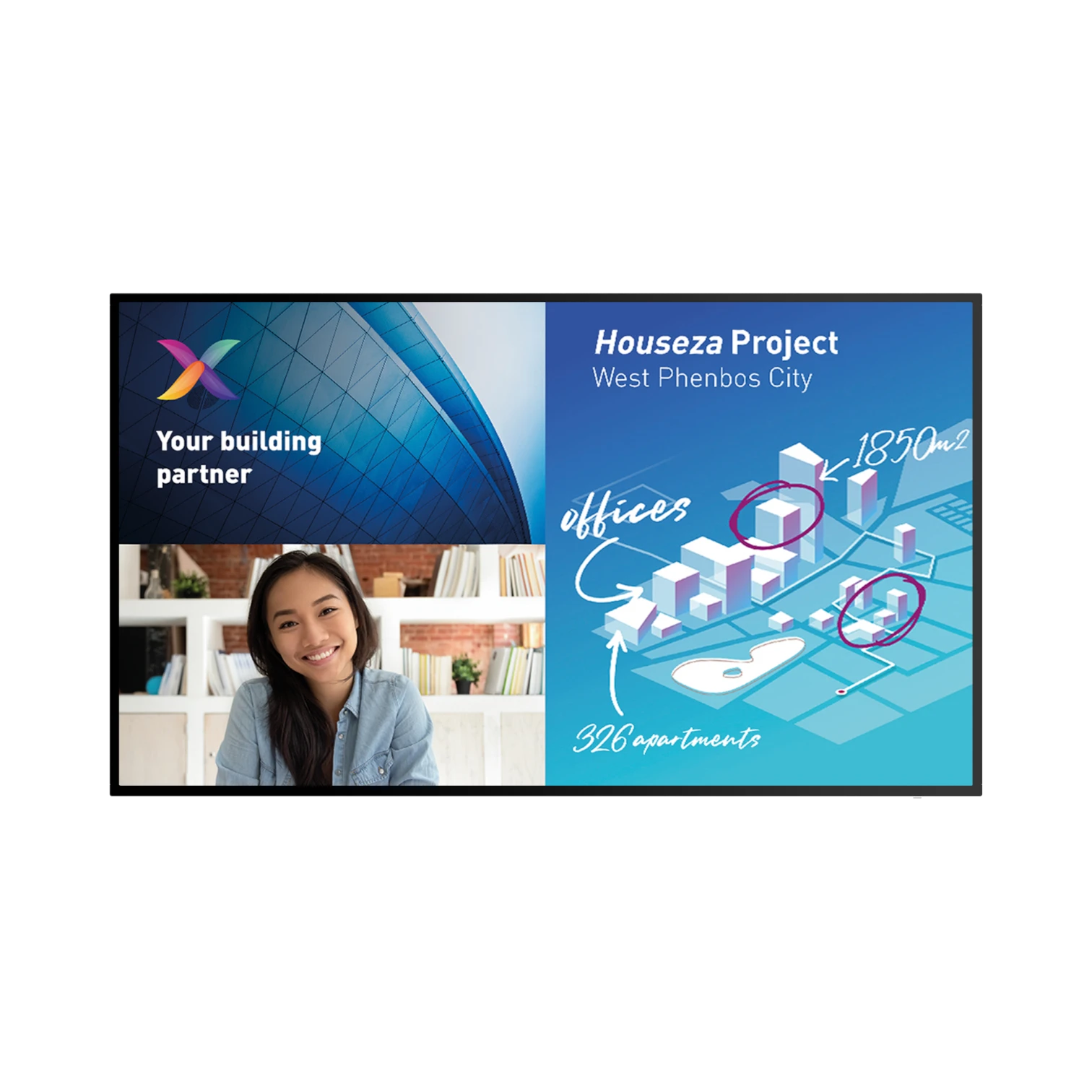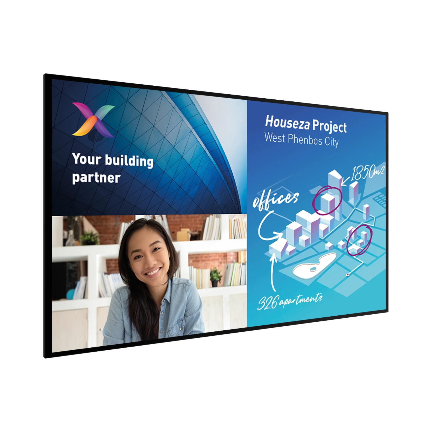 Running on Android 9, the display offers quick access to familiar apps and web resources, with straightforward updates that simplify maintenance for IT teams. It also supports video conferencing through a compatible USB camera and popular conferencing apps, making it a versatile tool for classrooms, meeting rooms, and public spaces.