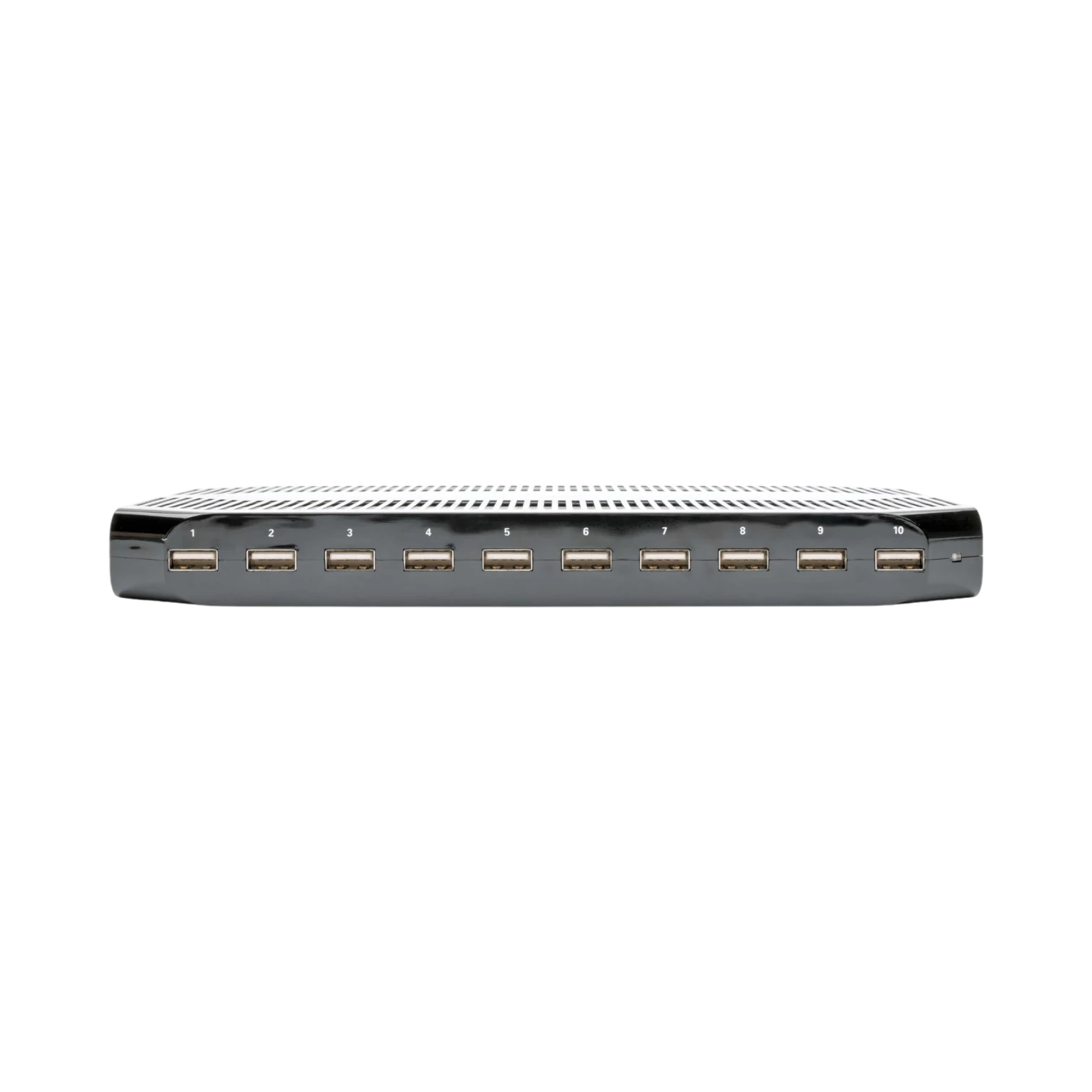 - Ten USB ports provide consistent charging power without prioritizing any single device, allowing a mix of phones and tablets to charge efficiently.