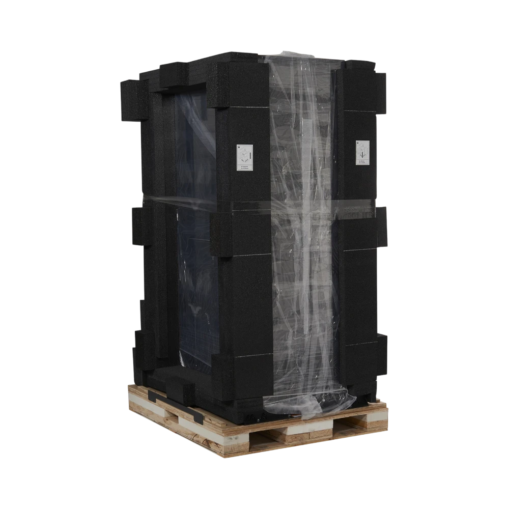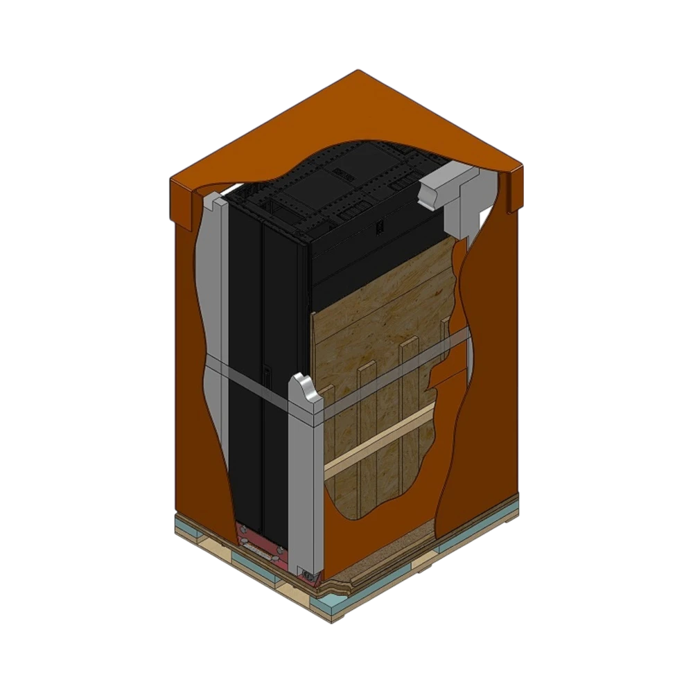 - Shock-absorbing pallet, unloading ramp, and protective shell safeguard equipment during transport and handling