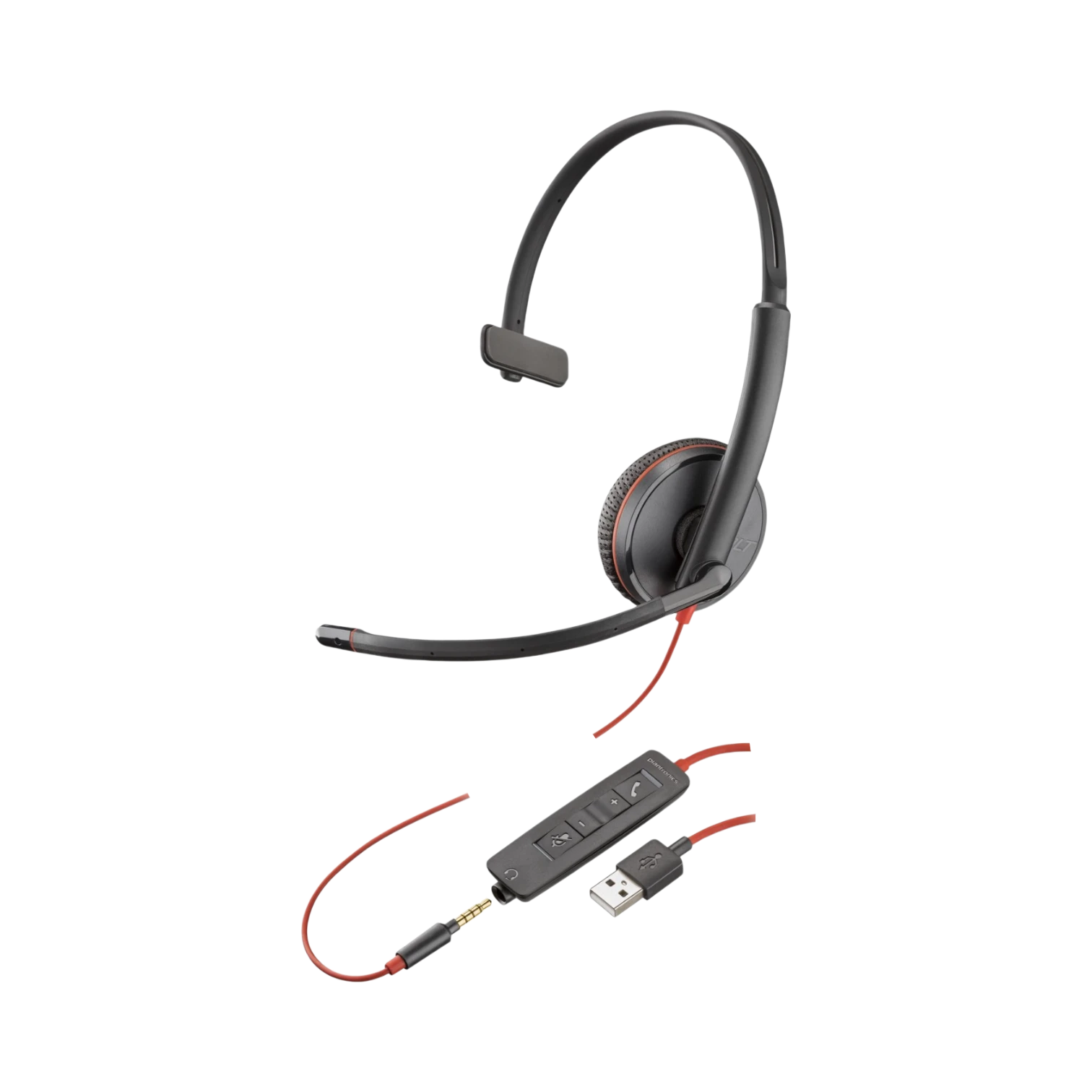 The Poly 8M3Y1A6#ABA is a monaural USB-A headset designed for professionals who spend long hours on voice or video calls. It delivers PC wideband audio and features a noise canceling microphone to ensure your voice comes through clearly, even in busy environments. The headset connects via USB-A for computers and includes a 3.5 mm plug for phones or tablets, offering flexibility across different devices. Its lightweight metal headband and soft leatherette ear cushion provide comfort throughout the day, while the single-ear design keeps you aware of your surroundings.