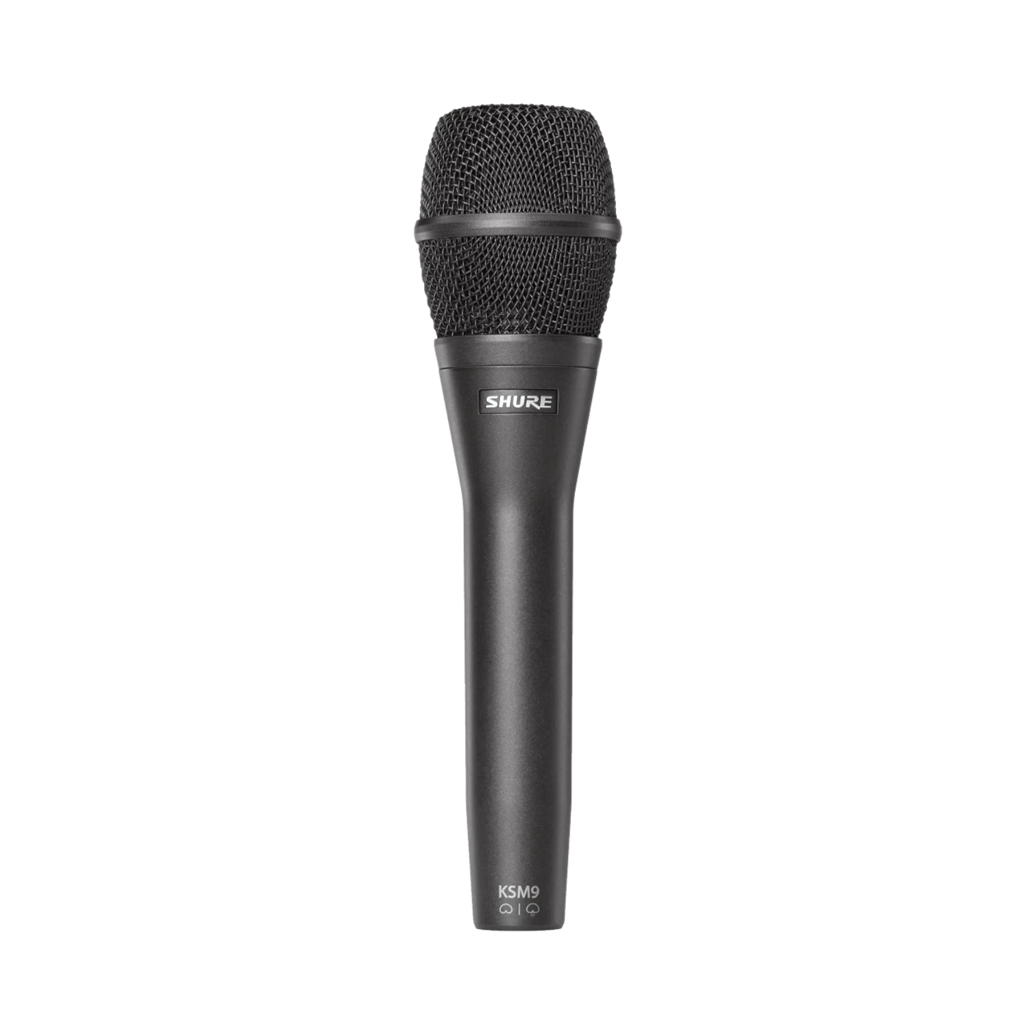 The Shure KSM9/CG is a handheld condenser microphone designed to capture subtle vocal nuances with clarity and precision on demanding stages. It features dual 19 mm gold-layered diaphragms that reduce proximity effect and deliver smooth, detailed high frequencies. With switchable cardioid and supercardioid polar patterns, this microphone adapts easily to various monitor setups and room acoustics, making it a versatile choice for vocalists in live performance and broadcast environments.