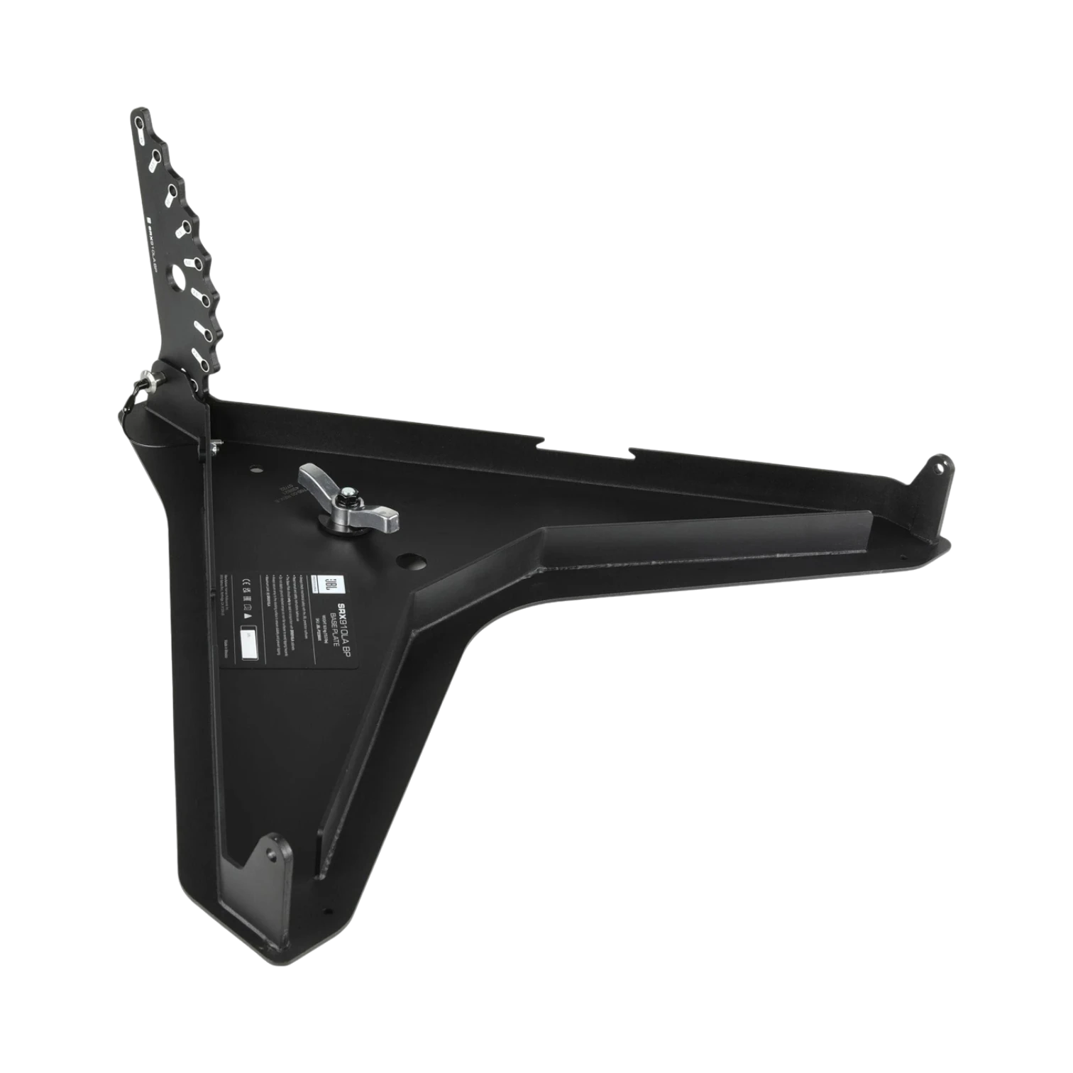 Setting up the JBL-P3238MX is straightforward, with the supplied M20 screw locking the plate firmly onto the subwoofer pole. The rear angle selection bar allows quick tilt adjustments to direct sound precisely where it is needed, whether toward floor-level listeners or elevated seating areas. The option to bolt the plate down using the M10 holes adds stability for longer-term installations or touring setups, ensuring safety and consistent performance.