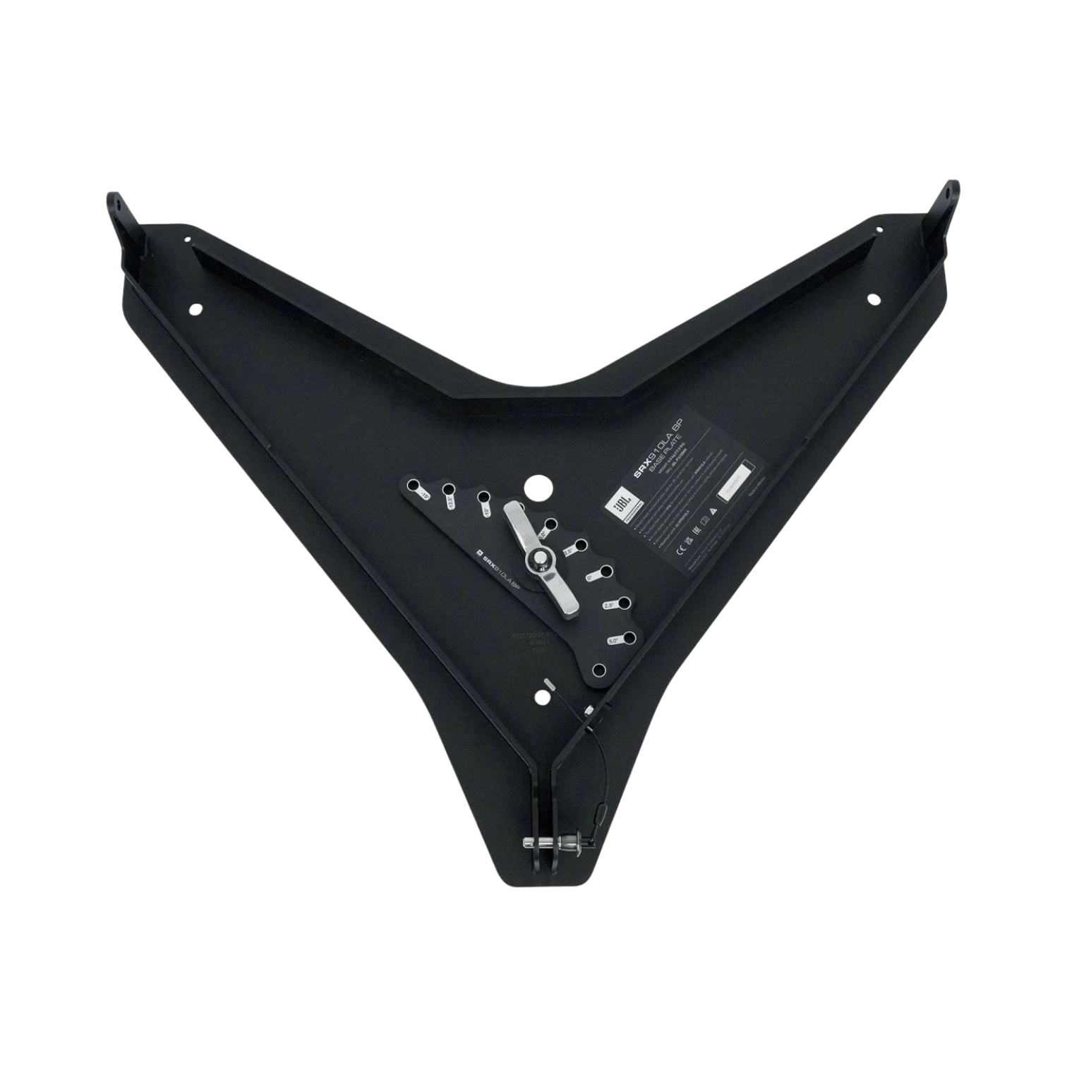 The JBL JBL-P3238MX is a base plate designed specifically for SRX910LA line array speakers, providing a secure and stable connection between the array and any subwoofer or support with an M20 threaded pole. This accessory enables quick assembly of ground-stacked systems, supporting up to six SRX910LA cabinets. Its robust steel construction ensures durability and rigidity, even under high output conditions, making it suitable for a variety of live sound environments such as corporate events, small theaters, and club gigs.