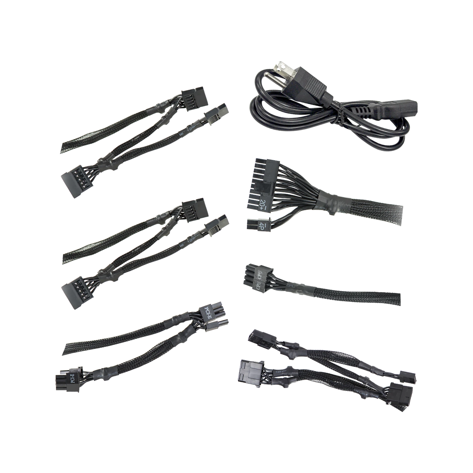 This power supply offers a versatile set of connectors to support a range of components. The six SATA power leads accommodate multiple storage devices or lighting accessories, while the two PCIe 8-pin (6+2) connectors provide the necessary power for modern graphics cards. Its standard ATX form factor ensures compatibility with most mid-tower and micro-ATX cases, making it a flexible choice for various builds.