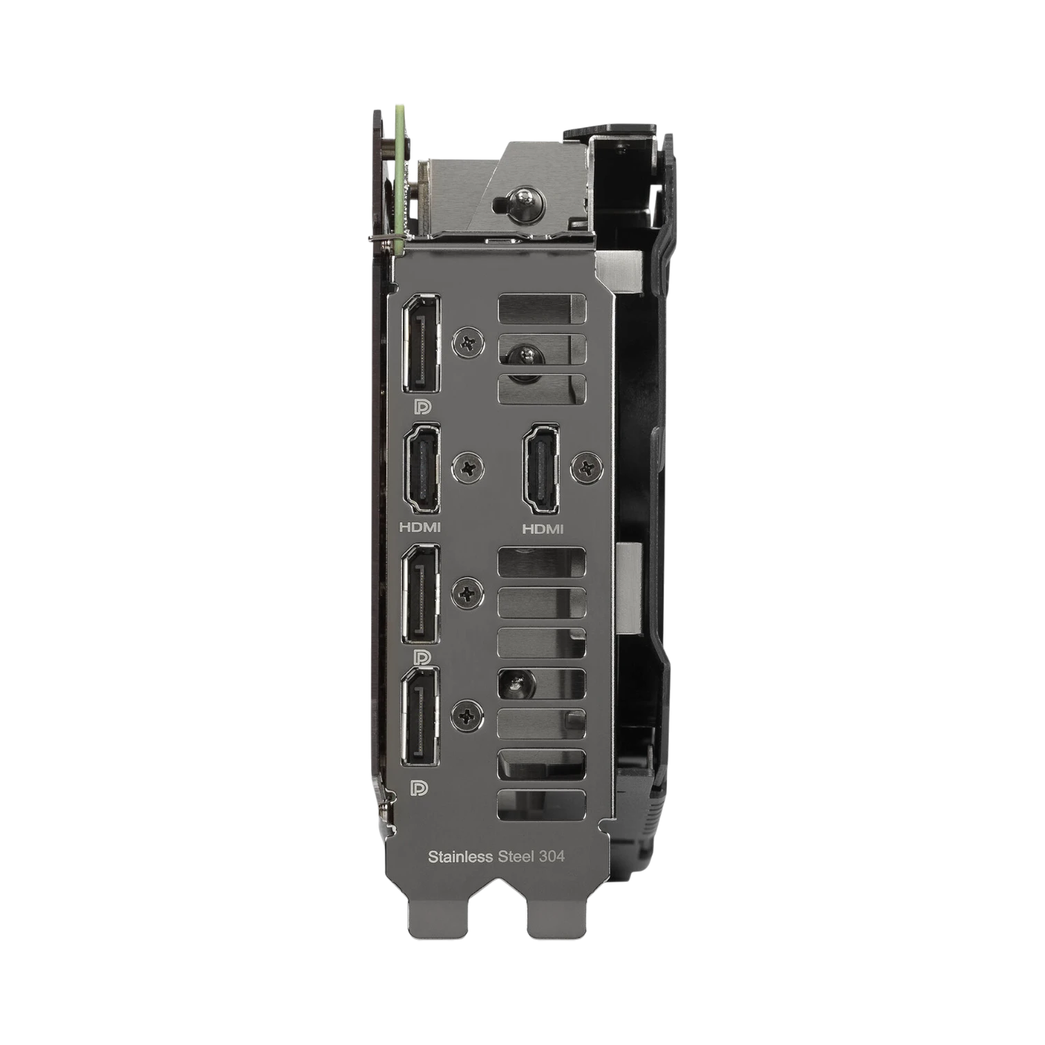 - Multiple display outputs include one HDMI 2.1 port for 8K resolution and three DisplayPort 1.4a connectors for multi-monitor setups.