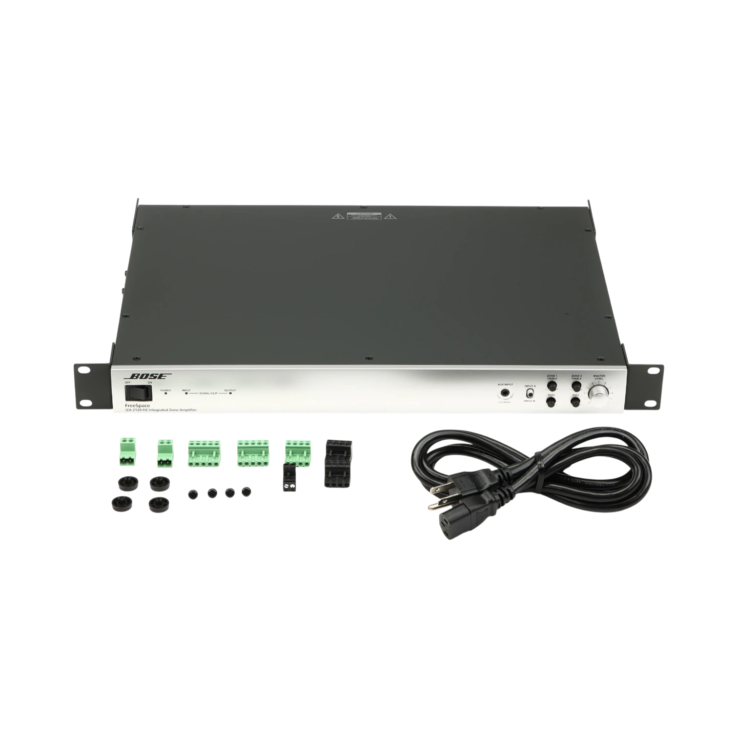 The Bose 719782-1430 is a FreeSpace IZA 2120-HZ zone amplifier designed to deliver reliable audio performance in commercial environments such as stores, restaurants, and conference rooms. It features two 120 watt channels that support 70 or 100 volt loudspeaker lines, enabling long cable runs and multiple speaker connections without signal degradation. This amplifier allows independent control of volume, equalization, and audio sources across two separate zones, making it easy to tailor sound levels and content to different areas within a venue.