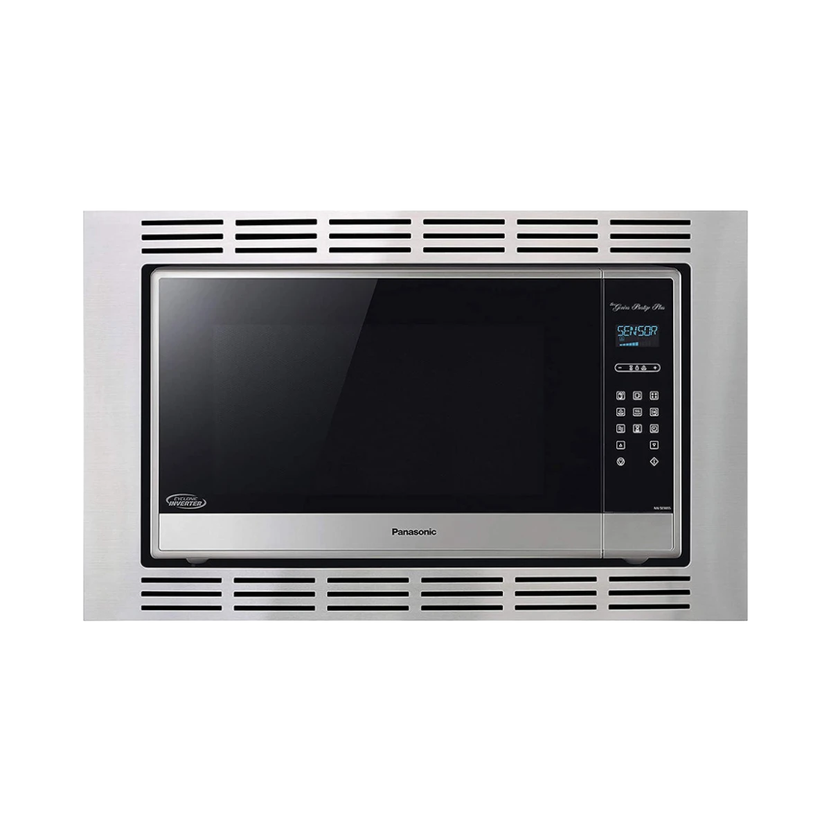 The Panasonic NN-TK932SS is a 30-inch stainless steel trim kit designed to convert your 2.2 cubic foot Panasonic countertop microwave into a built-in appliance. It provides a clean and professional look by fitting your microwave neatly within a cabinet opening, helping you save valuable counter space. This kit is compatible with select Panasonic microwave models such as NN-SE9S, NN-SD9S, NN-SN9S, and NN-ST9S, ensuring a secure and ventilated installation.
