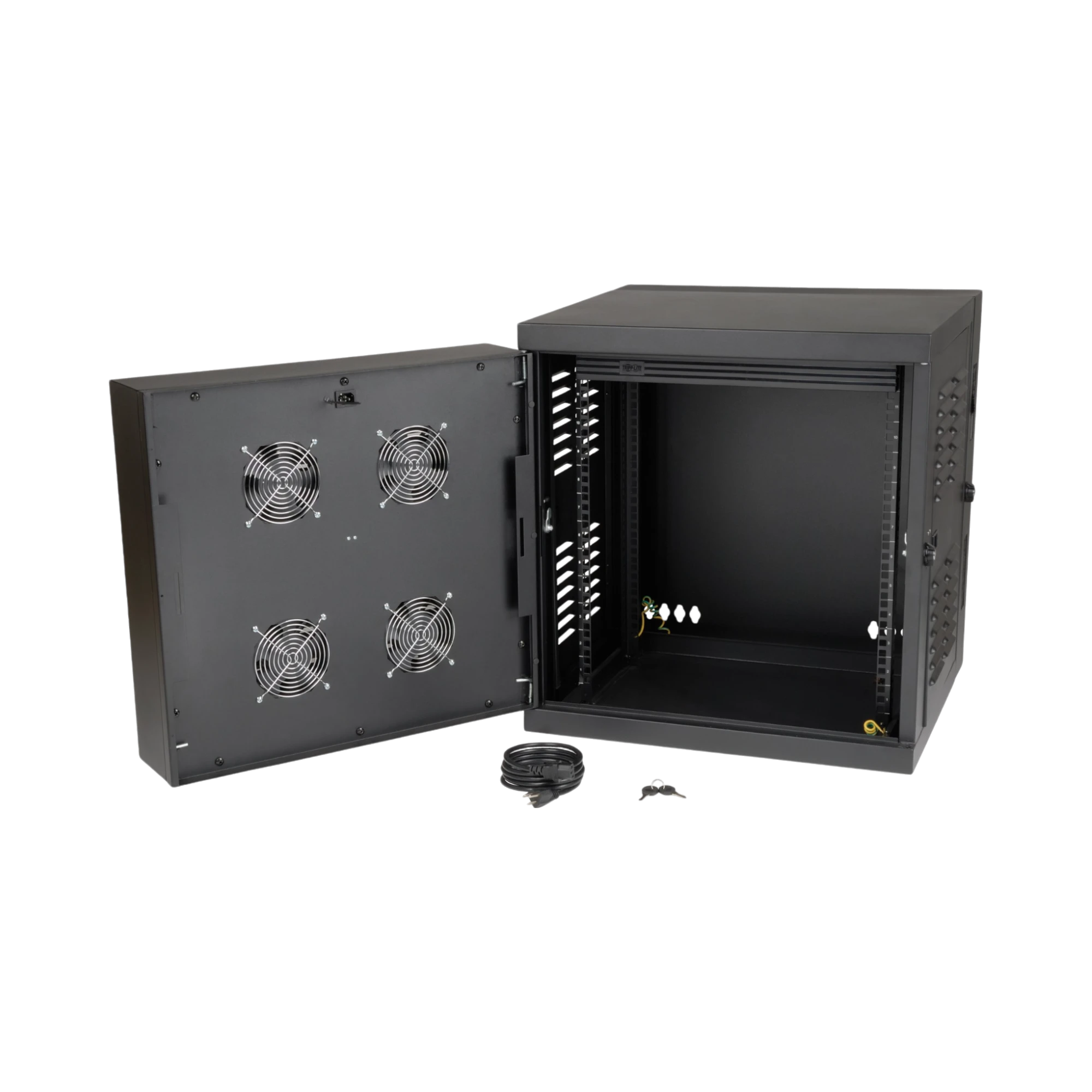 SmartRack 12U Switch-Depth Wall-Mount Small Rack Enclosure for Harsh Environments, Hinged Back, 230V
