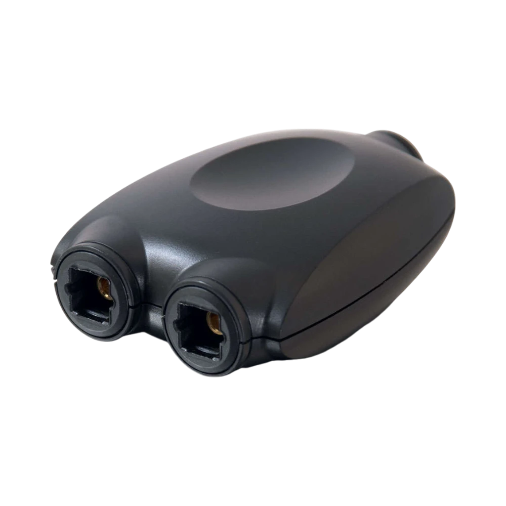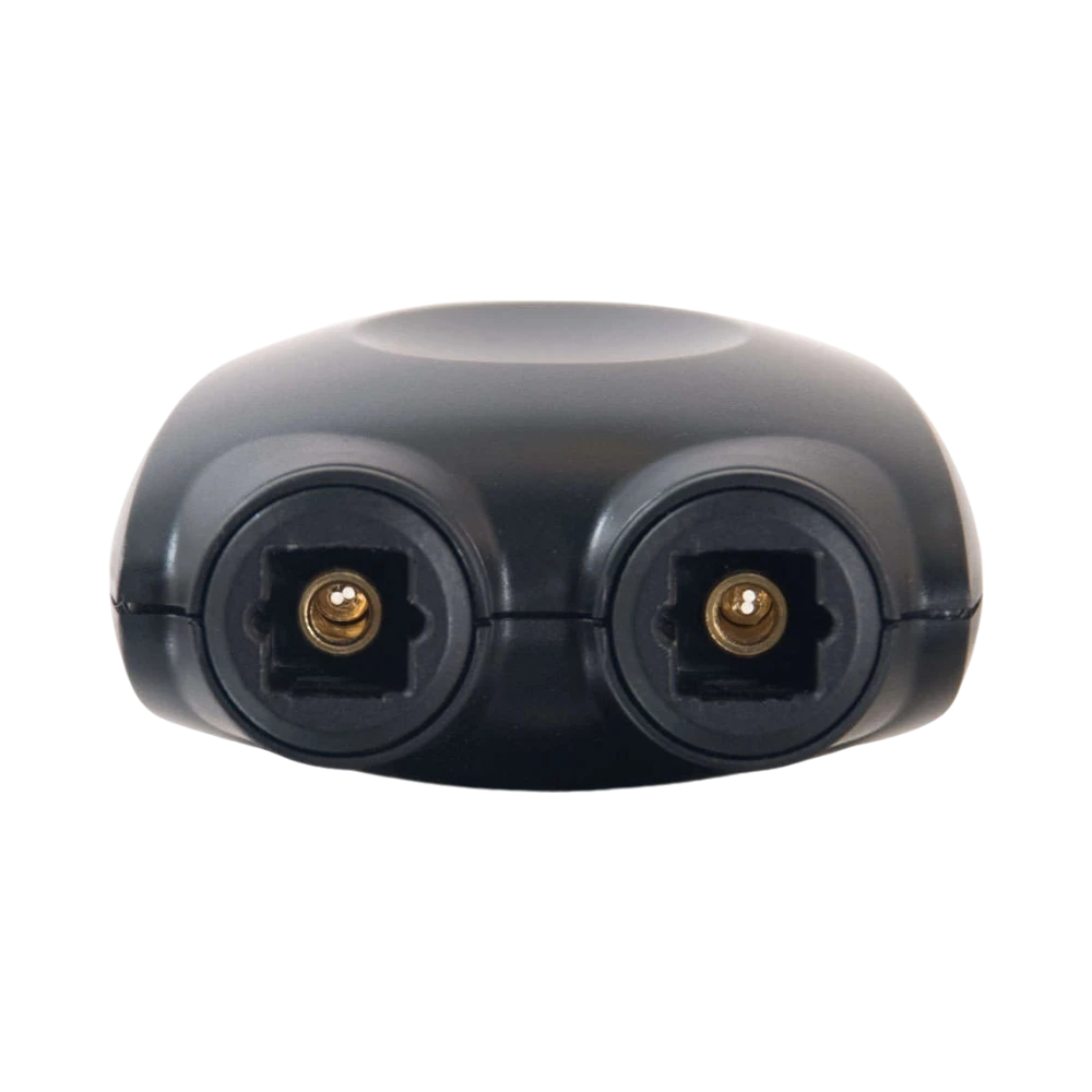 - Splits one Toslink input into two independent Toslink outputs, allowing simultaneous audio playback on two devices