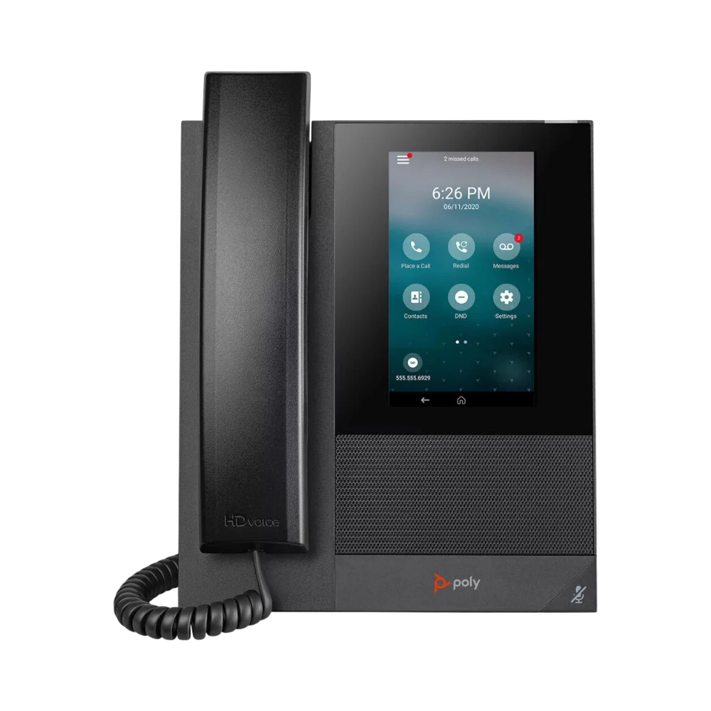 Audio quality is a key focus, with Poly HD Voice processing, wideband audio, and full duplex communication ensuring natural conversations. Advanced noise reduction technologies like Acoustic Fence and NoiseBlockAI help maintain call clarity even in noisy settings. The phone also supports Bluetooth and NFC for wireless headset connections and smartphone pairing, making it adaptable to hybrid work styles.