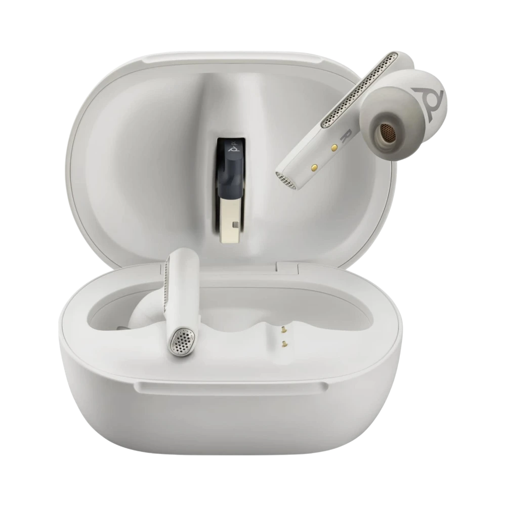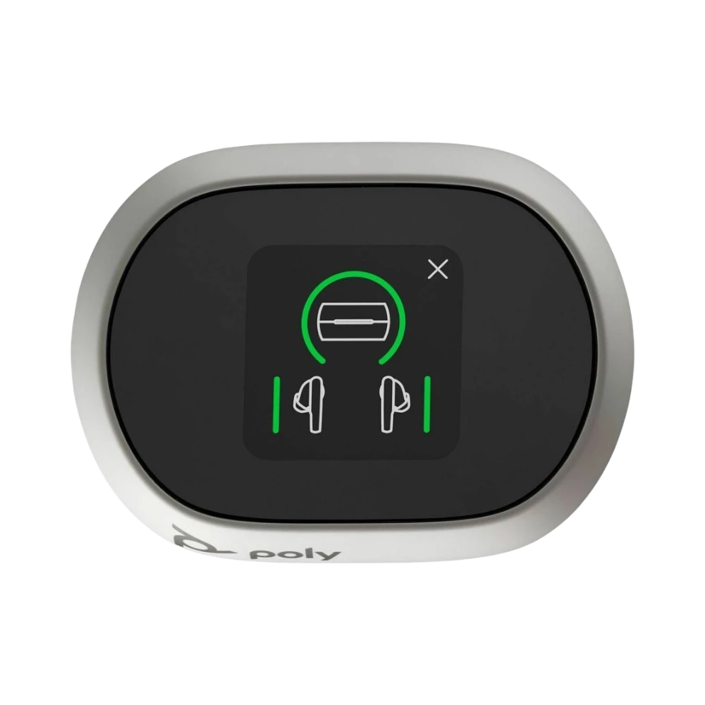 The Poly earbuds feature a lightweight build paired with three sizes of conical-shaped ear tips, allowing you to find the best fit for your ears. This design supports comfortable all-day wear, whether you are working from home, commuting, or traveling. The white sand finish adds a subtle yet refined look that fits well in professional and casual settings alike. The included charging case not only extends battery life but also offers intuitive touchscreen controls for managing your audio experience with ease.
