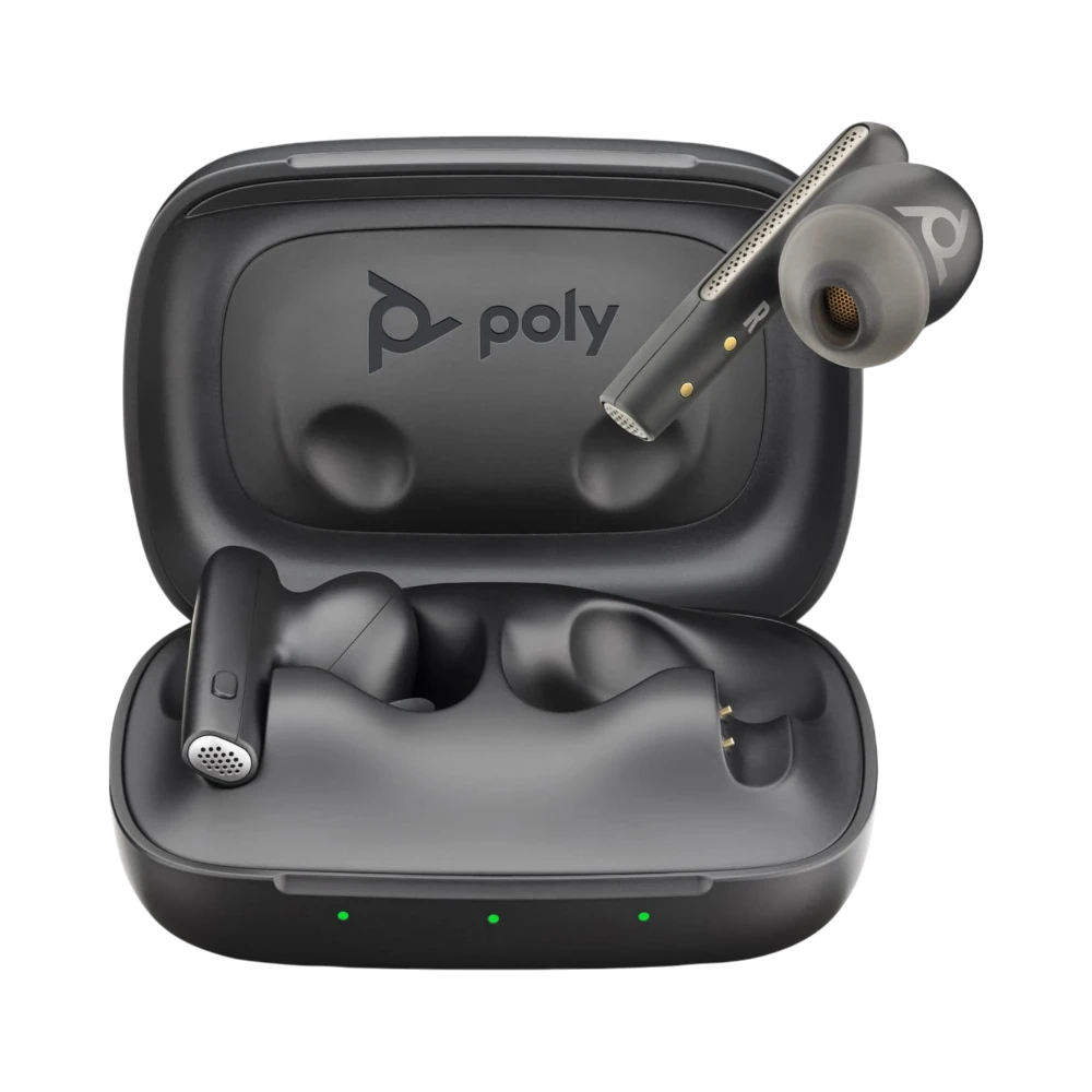 - Poly Lens app support lets you customize ANC levels, check battery status, and adjust touch controls for personalized use.