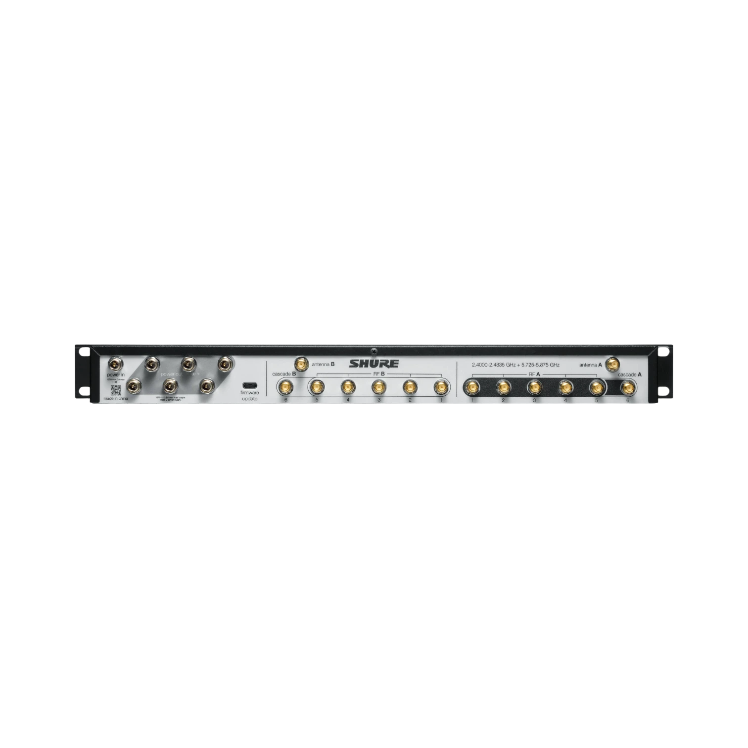 This frequency manager is designed specifically for Shure GLX-D+ wireless systems, ensuring full compatibility and optimized performance. Its RF ports distribute antenna signals efficiently, reducing the need for extra antennas and simplifying your wireless setup. The ability to cascade multiple units allows for flexible expansion in complex audio environments.