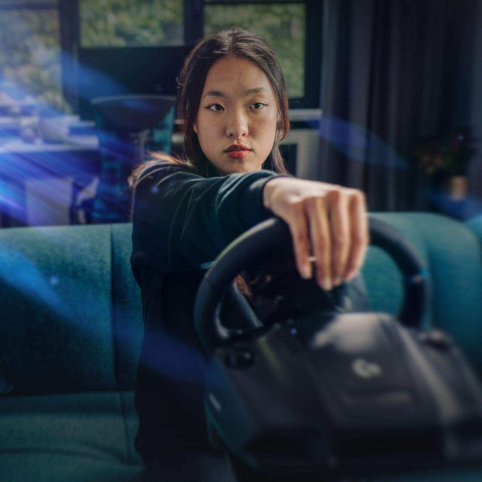 This sim racing wheel and pedal set connects seamlessly to PC and PlayStation consoles, supporting a wide range of racing games. The integrated console controls simplify in-game adjustments without interrupting your focus. Its compatibility with Logitech G Hub software allows you to customize profiles and fine-tune the wheel’s behavior to match your preferred racing style and game requirements.