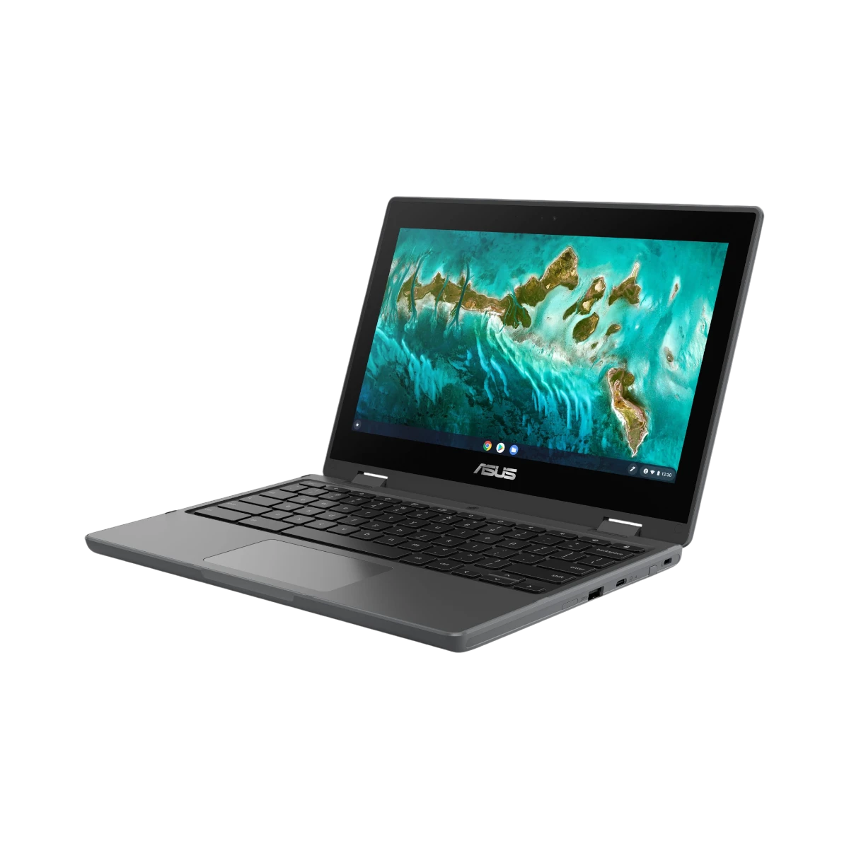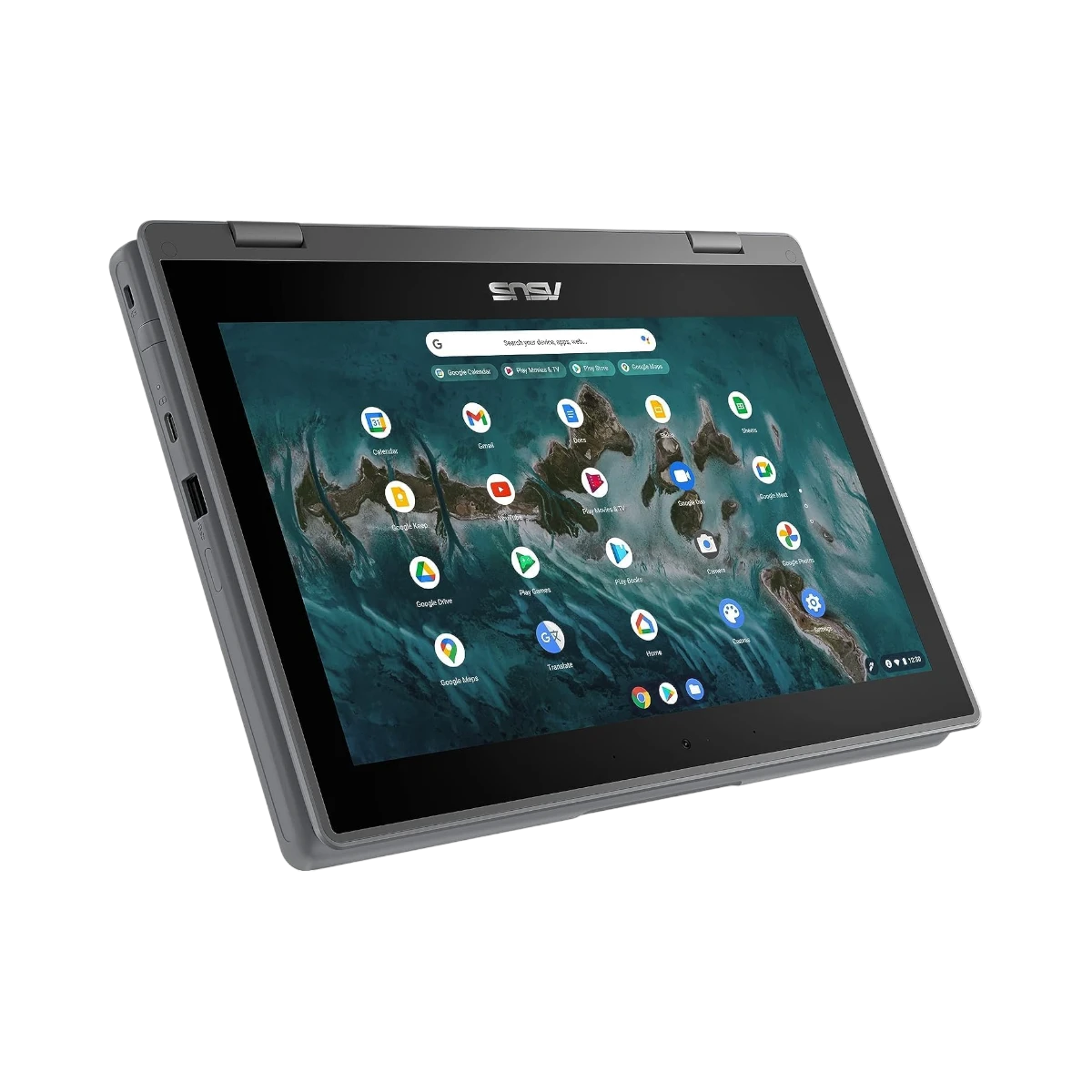 The ASUS CR1100FKA-YZ182T is a Chromebook designed to meet the needs of students and educational environments with a durable build and practical features. It features an 11.6-inch HD touchscreen that supports both laptop and tablet modes, making it flexible for various learning activities. Powered by an Intel Celeron N5100 processor and equipped with 8GB of RAM, it handles multitasking and everyday applications efficiently. The 32GB eMMC storage provides space for essential files, while WiFi 6 and Bluetooth 5.2 ensure fast and stable wireless connections. Its rugged design and spill-resistant keyboard make it a reliable choice for classrooms and remote learning.