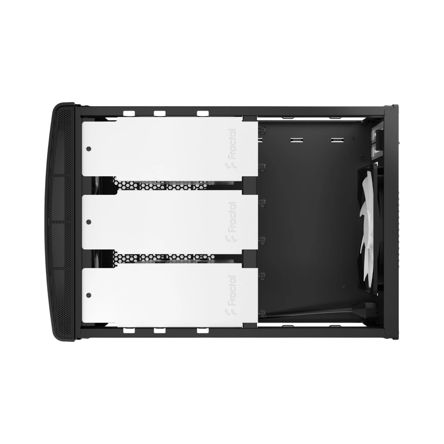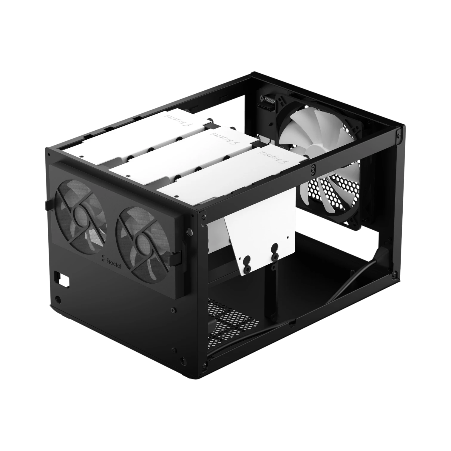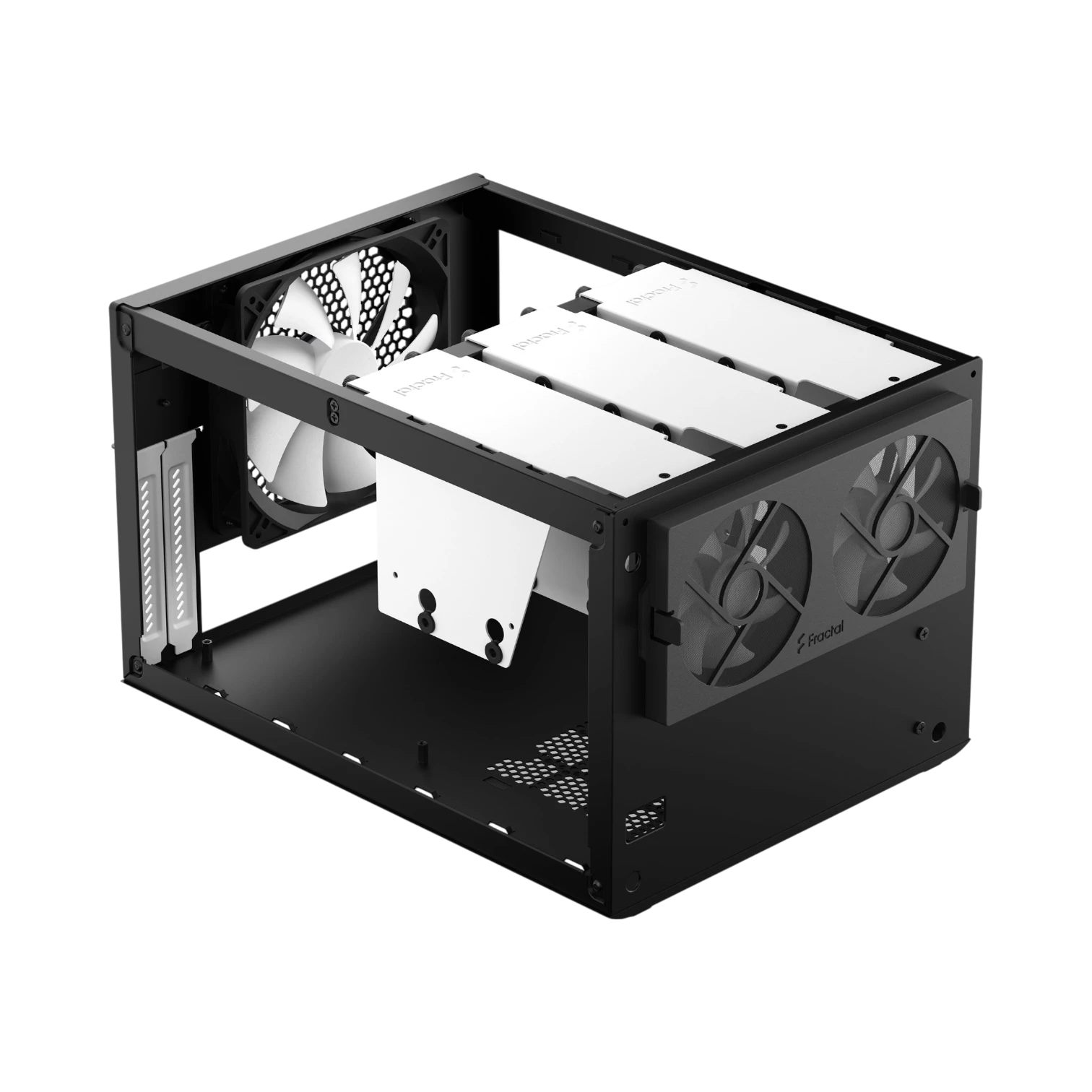 The Fractal Design FD-CA-NODE-304-BL is a Mini-ITX computer case that combines a compact footprint with versatile hardware support, making it suitable for building powerful systems in limited spaces. It accommodates up to six hard drives and supports graphics cards up to 310mm in length, allowing for high-performance configurations. With three preinstalled Silent Series R2 fans and dust filters on all intake areas, it ensures effective cooling and cleanliness while maintaining a quiet operation.