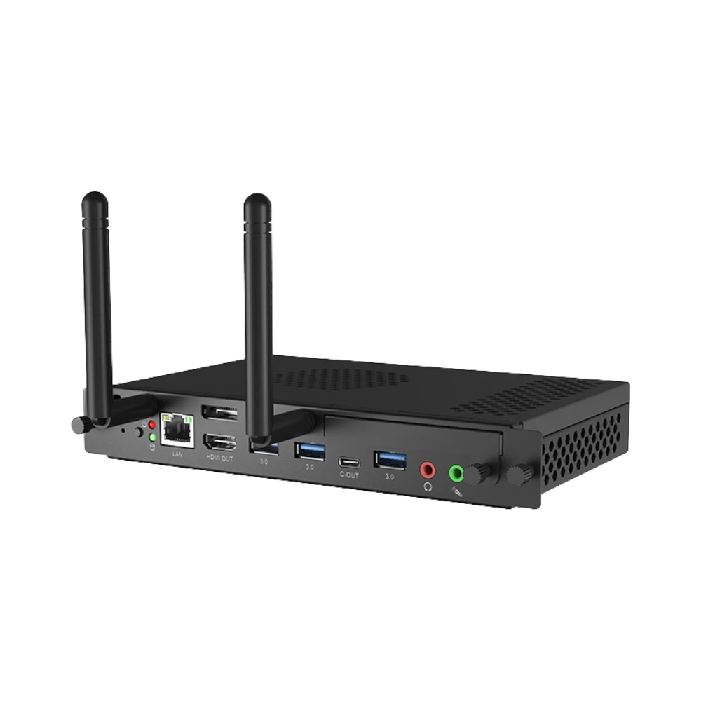 This digital signage player offers versatile connectivity options to fit various setups. The USB-A and USB-C ports allow connection to external devices such as keyboards, mice, and storage drives. HDMI output supports high-resolution displays, while the Ethernet port ensures stable wired network connections. Built-in Wi-Fi and Bluetooth 5.1 provide wireless flexibility, enabling easy integration with peripherals and network environments without additional adapters. Its design specifically matches the OPS slot of Avocor L Series displays, ensuring seamless compatibility and a clean installation.