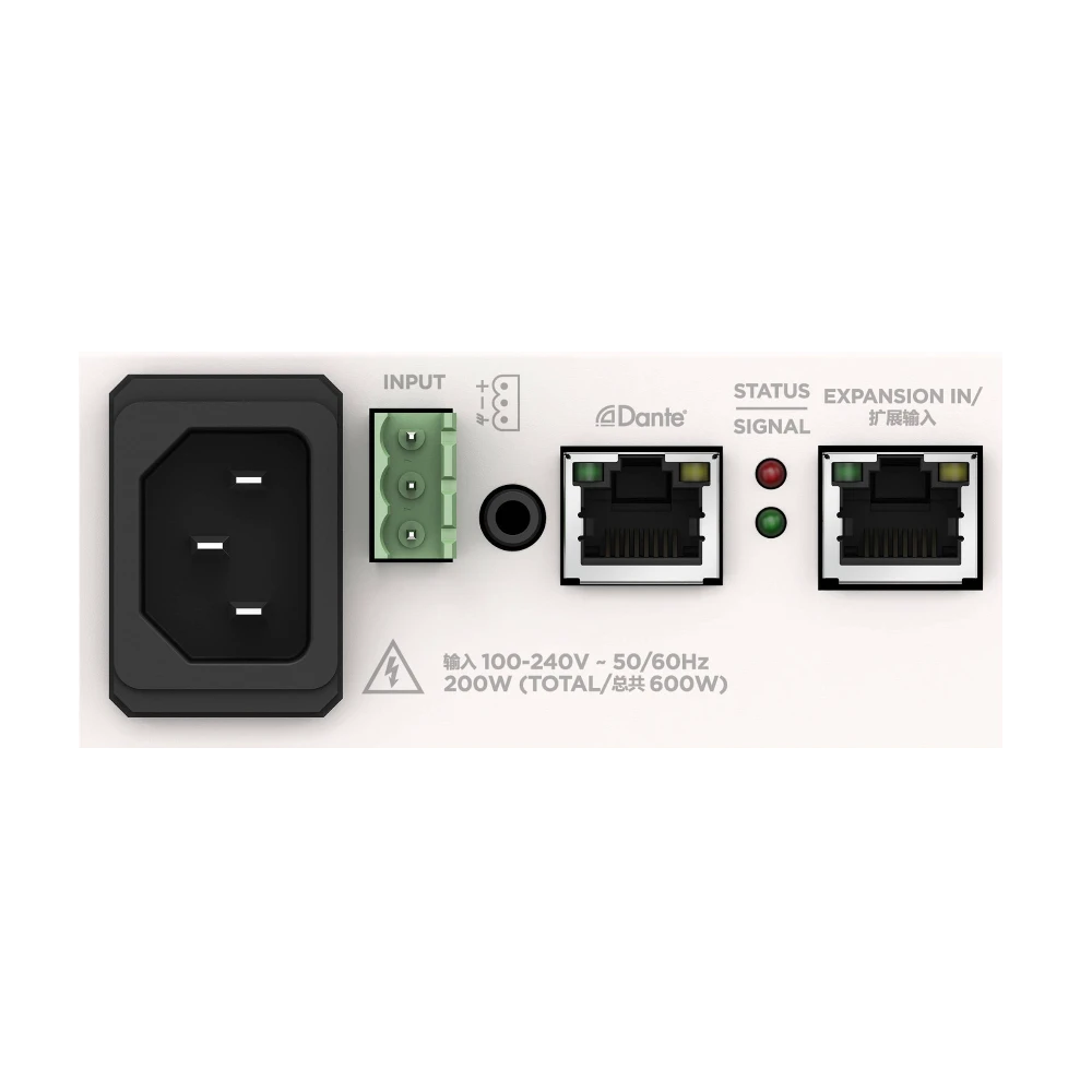 - Dante digital audio network interface enables seamless integration with other Dante-enabled devices for streamlined setups