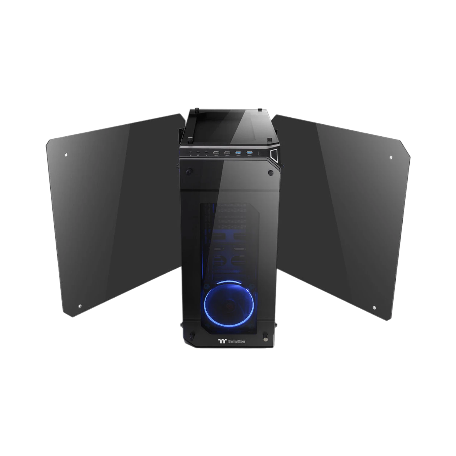 The Thermaltake CA-1I7-00F1WN-00 is a full-tower PC case designed to showcase your build with style and practicality. Featuring four tempered-glass panels, it offers a clear view of your components from all sides, making it ideal for users who want to display their high-end hardware. Equipped with two 140mm Riing Blue LED fans, it provides effective cooling while adding a vibrant visual effect. The case supports large motherboards up to E-ATX size and accommodates graphics cards up to 16.1 inches long, making it suitable for powerful gaming rigs, workstations, or showcase PCs.