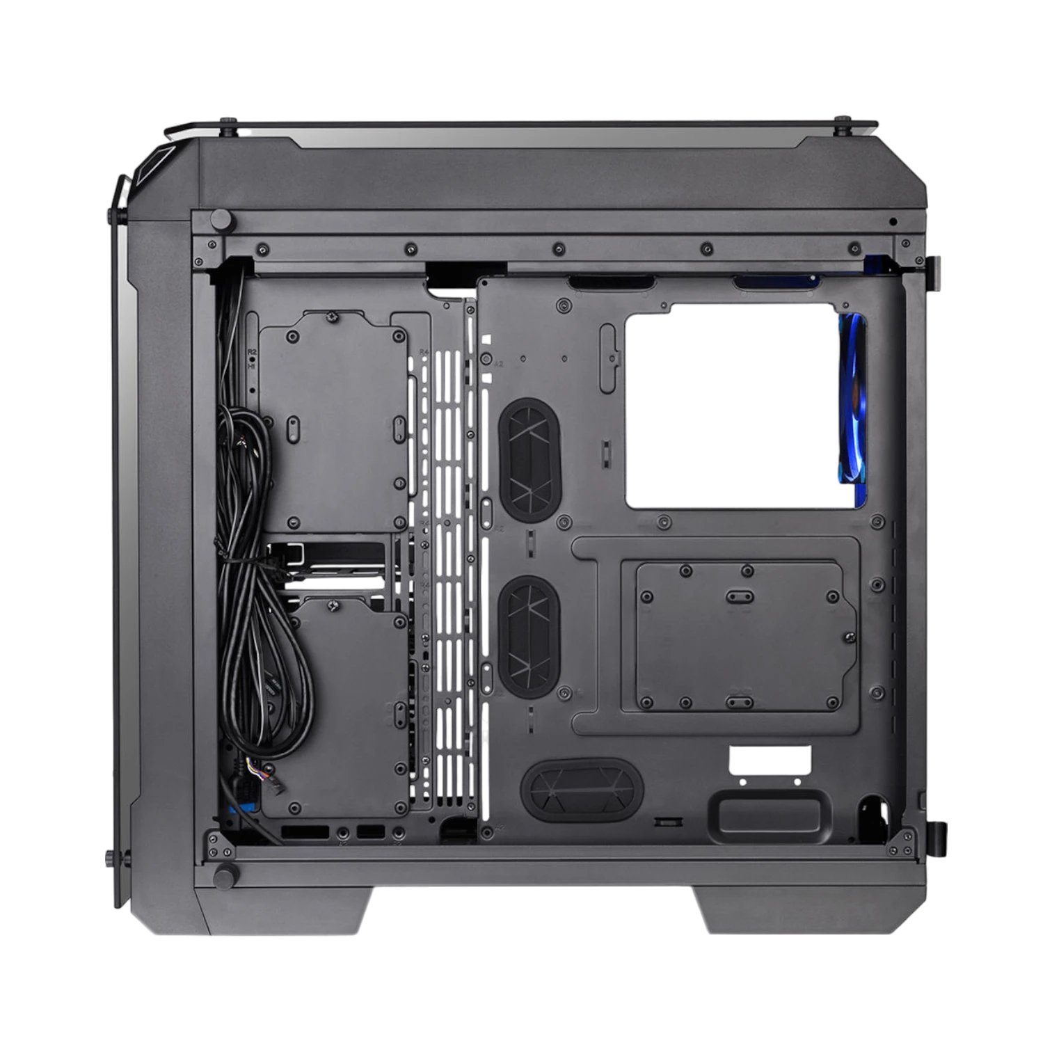 Designed to keep high-performance systems cool, this case accommodates multiple cooling configurations. The included 140mm Riing Blue LED fans provide both airflow and visual appeal, while the spacious interior supports up to three 420mm radiators or a 360mm all-in-one liquid cooler. This flexibility allows builders to tailor cooling solutions to their specific needs, whether air or liquid cooling, ensuring stable operation under heavy workloads.