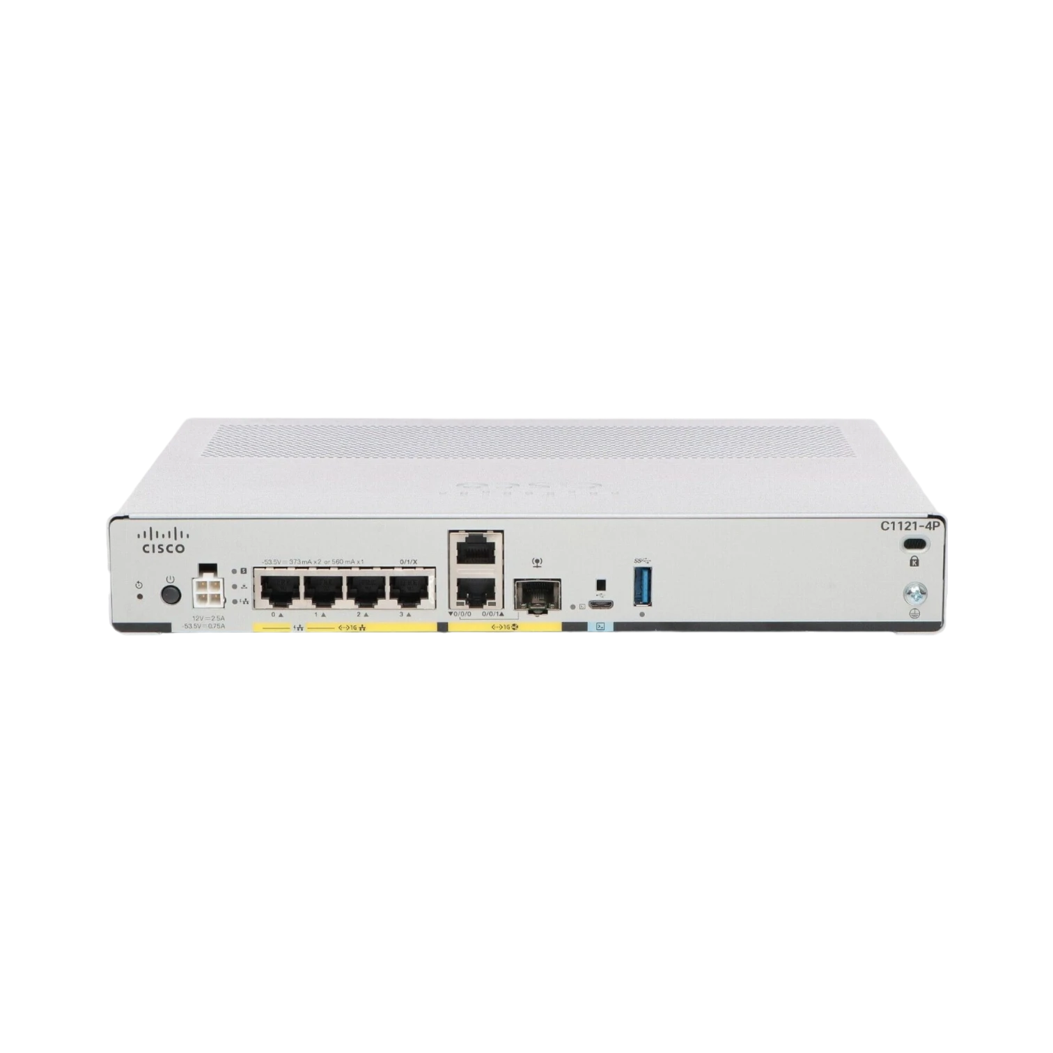 The Cisco C1121-4P is a 1000 Series router designed to provide reliable and secure network connectivity for small to medium-sized businesses. It supports Gigabit Ethernet for fast data transfer and includes four Power over Ethernet (PoE) ports, allowing you to power connected devices directly through the network cable. Its rack-mountable design helps integrate it neatly into existing network infrastructure, making it a practical choice for environments that require consistent high-speed internet and wireless access without the complexity of multiple devices.