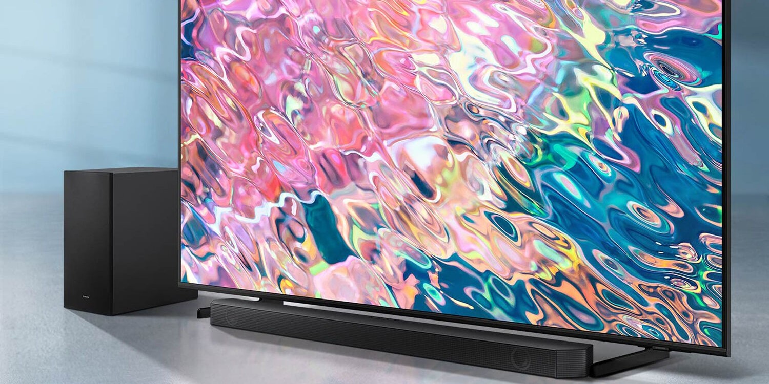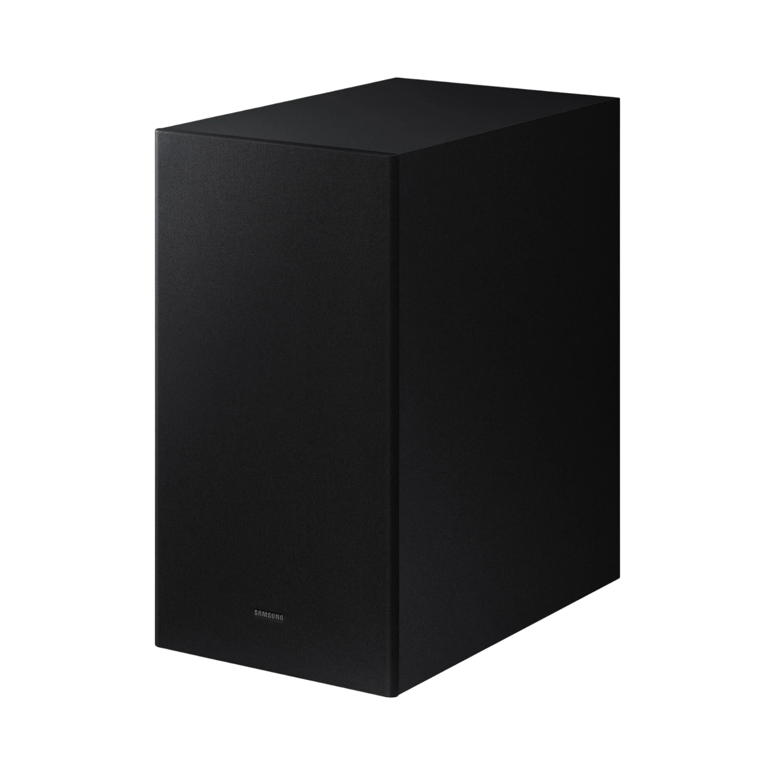 - Q-Symphony technology synchronizes the soundbar with compatible Samsung TV speakers to create a wider and more immersive front soundstage.