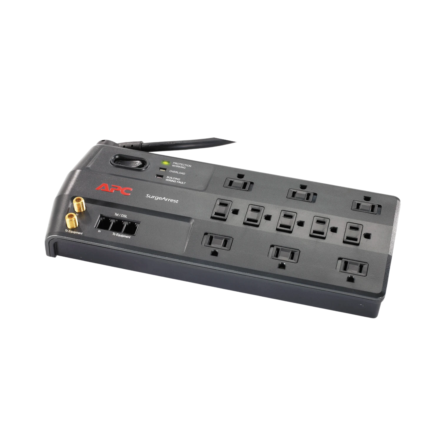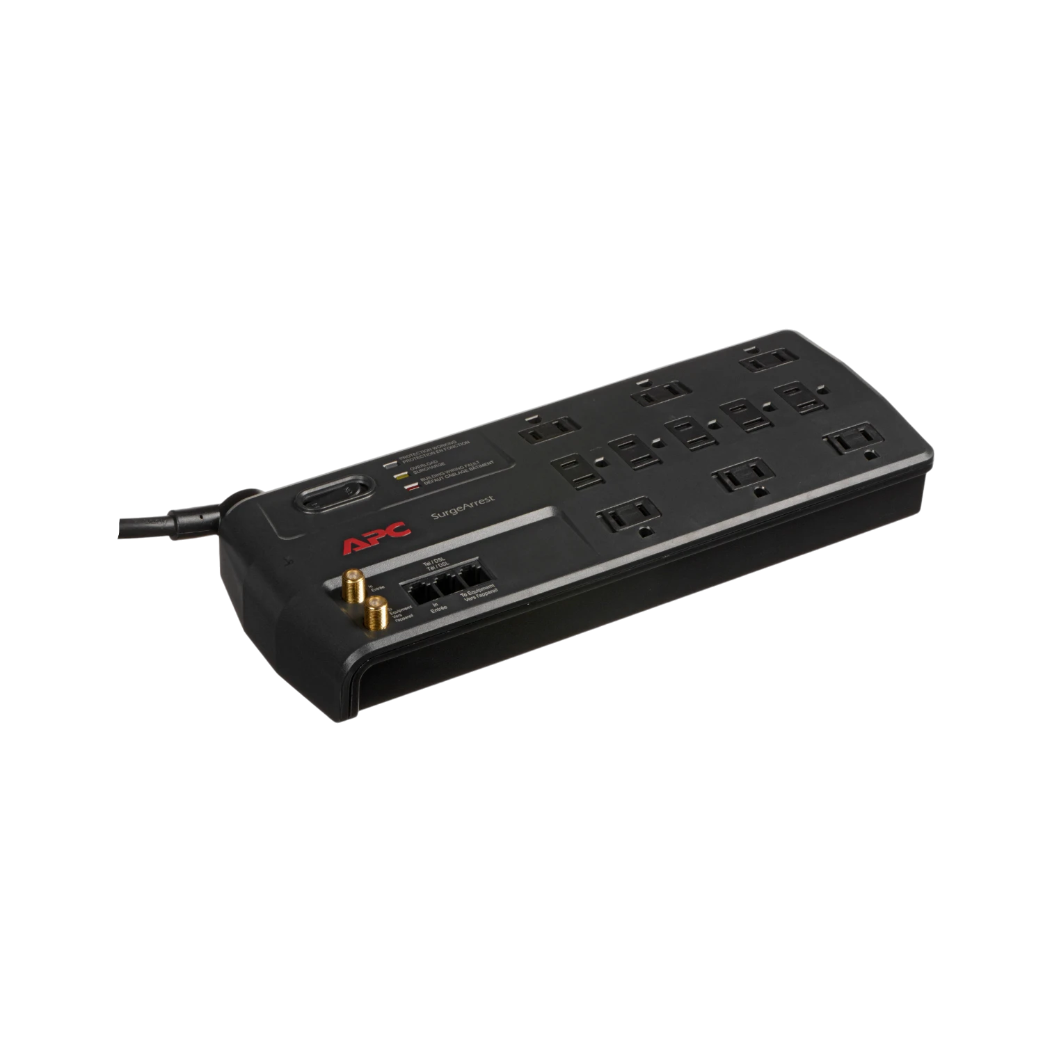 The APC P11VT3 is a surge protector designed to safeguard your electronic devices from damaging power surges and voltage spikes. It features 11 outlets, including six with extra spacing to accommodate larger plugs or adapters without blocking adjacent sockets. With a surge protection rating of 3020 joules, it offers robust defense for sensitive equipment such as computers, TVs, and gaming consoles. Additional protection for phone and coaxial lines helps prevent surges traveling through data connections from causing harm. Its 8-foot power cord with a right-angle plug allows flexible placement in tight spaces, making it a practical choice for home offices, entertainment centers, or any setup with multiple devices.
