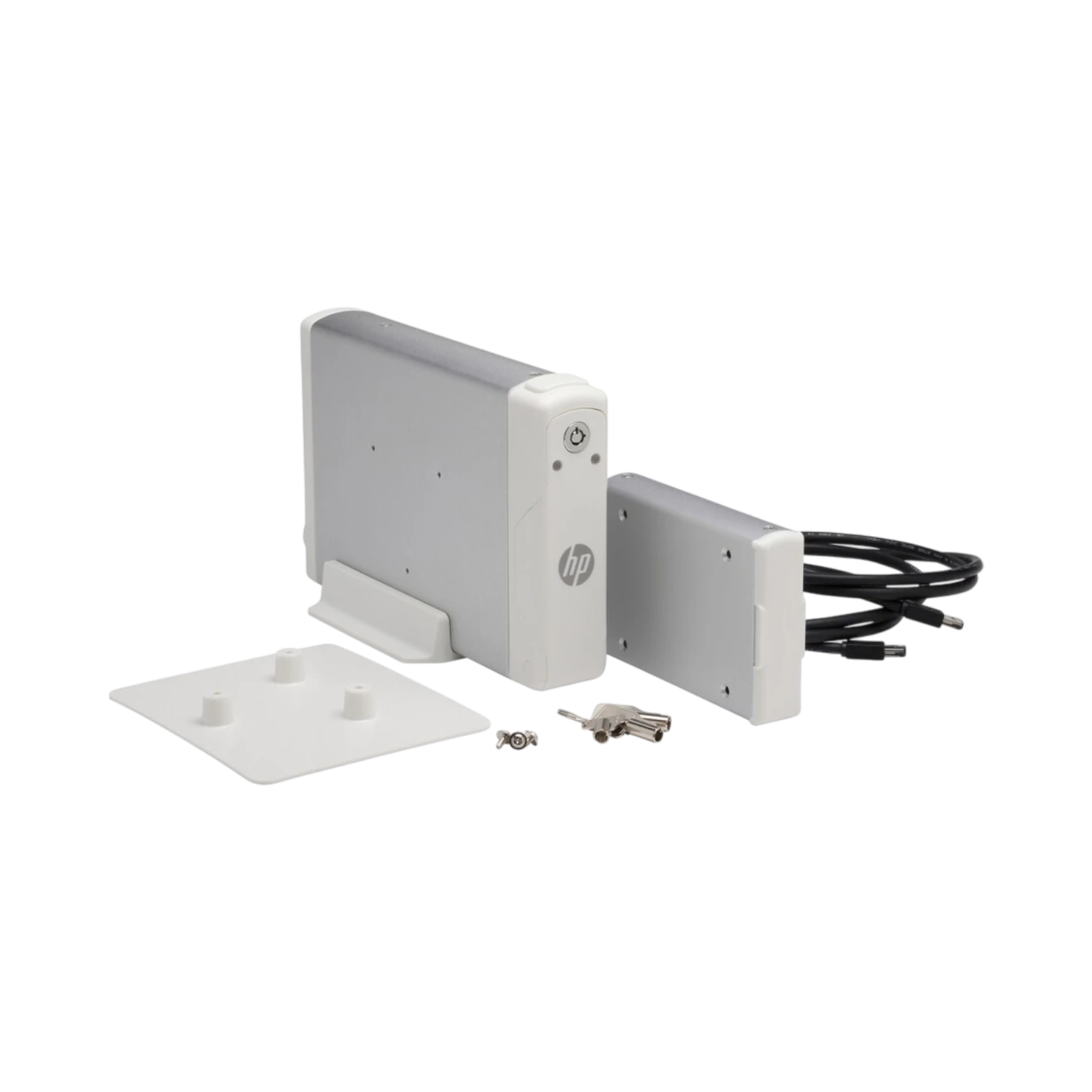 The HP 2NR12A is an external drive enclosure designed to securely house one or two encrypted hard drives, providing a practical solution for protecting sensitive data while maintaining easy access. Its lockable case features a keyed barrel lock and supports a heavy-duty Kensington lock, offering multiple layers of physical security. The enclosure connects directly to select HP enterprise devices via an internal cable, eliminating the need for external power supplies and reducing cable clutter. Constructed from durable aluminum, it measures 8.4 by 5.5 by 1.5 inches and weighs just 1.63 pounds, making it compact and easy to handle. Its fanless design ensures quiet operation, fitting well in noise-sensitive office or data center environments.