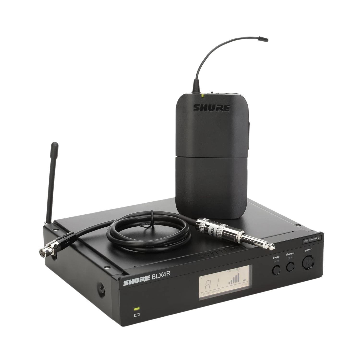 The Shure BLX14R-H9 is a wireless guitar system designed to provide clear and reliable audio for guitar and bass players during live performances. It features a rugged single-channel rackmount receiver paired with a bodypack transmitter and instrument cable, making it easy to integrate into existing sound setups. With an operating range of up to 300 feet and up to 14 hours of battery life, this system offers freedom of movement and long-lasting performance for musicians on stage or in the studio.