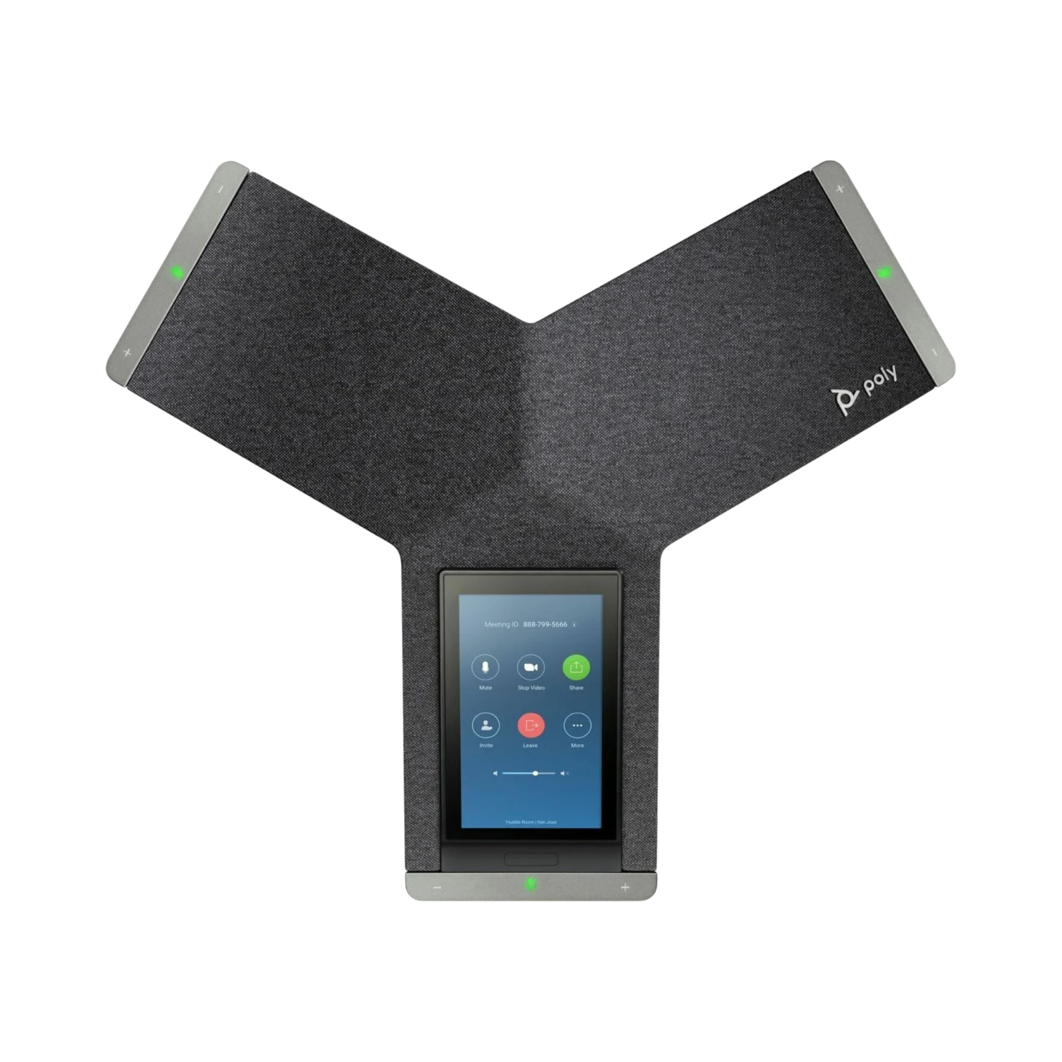 The Poly 849B3AA#ABA is a versatile conference station designed to deliver clear and natural audio in various meeting environments. Featuring a 5-inch color touchscreen, it simplifies call management and supports multiple connectivity options including Bluetooth, Wi-Fi, and wired Ethernet. With three cardioid microphones covering a 20-foot range, this system ensures voices are captured accurately, making it suitable for small to mid-sized rooms and scalable for larger spaces.