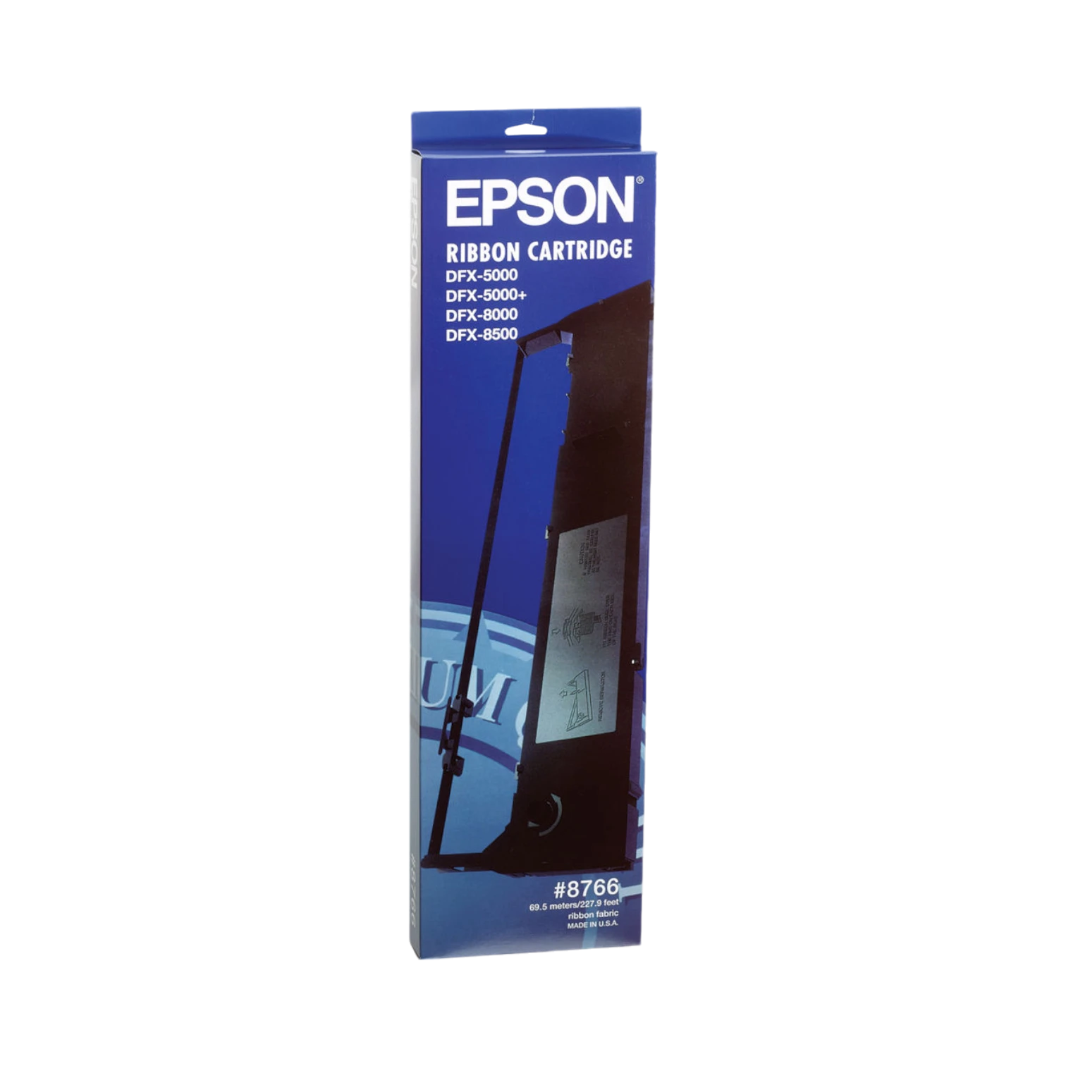 The Epson 8766 is a black fabric ribbon cartridge designed for use with specific Epson impact printers. It delivers a high yield of up to 15 million characters, making it a practical choice for environments that require continuous and heavy-duty printing. The ribbon’s lubricating ink helps protect the print head, ensuring longer printer life and consistent print quality for documents such as invoices, shipping labels, and multi-part forms.