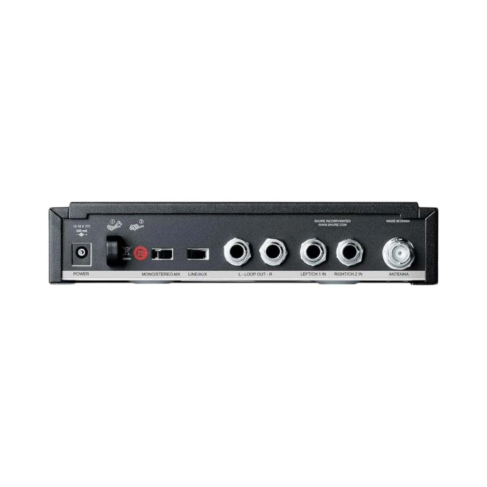 The transmitter’s balanced 1/4" TRS inputs allow direct connection to a variety of audio sources such as mixers, instruments, or audio interfaces, while the loop outputs enable chaining multiple transmitters for expanded setups. Its infrared sync feature ensures quick and accurate pairing with Shure PSM300 bodypack receivers, maintaining a stable and interference-free wireless link. This makes it well suited for professional audio environments where reliable and flexible connectivity is essential.
