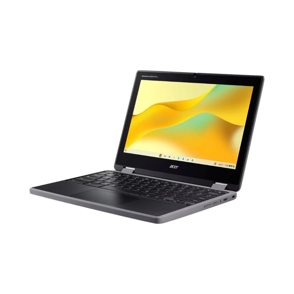 The Acer NX.J1YAA.001 is a Chromebook Spin 311 touchscreen notebook designed to offer a lightweight and secure computing experience powered by ChromeOS. It features an 11.6-inch IPS display with a 1366 x 768 resolution that responds quickly to touch gestures, making it suitable for students, remote workers, and travelers who need a reliable device for browsing, note-taking, and streaming. The MediaTek Kompanio 528 processor with eight cores running up to 2.2 GHz, combined with 8 GB of LPDDR4X memory, ensures smooth multitasking across Google Workspace apps, video calls, and multiple browser tabs.