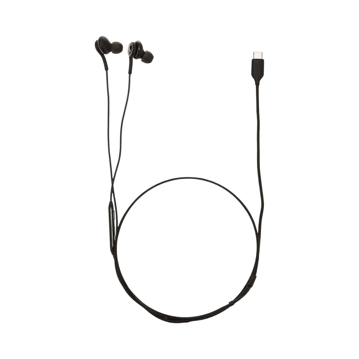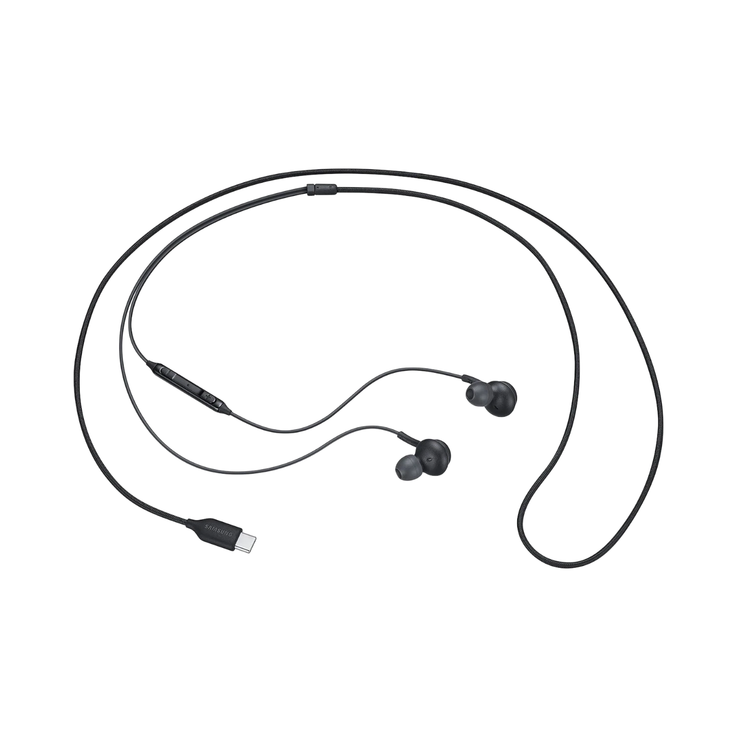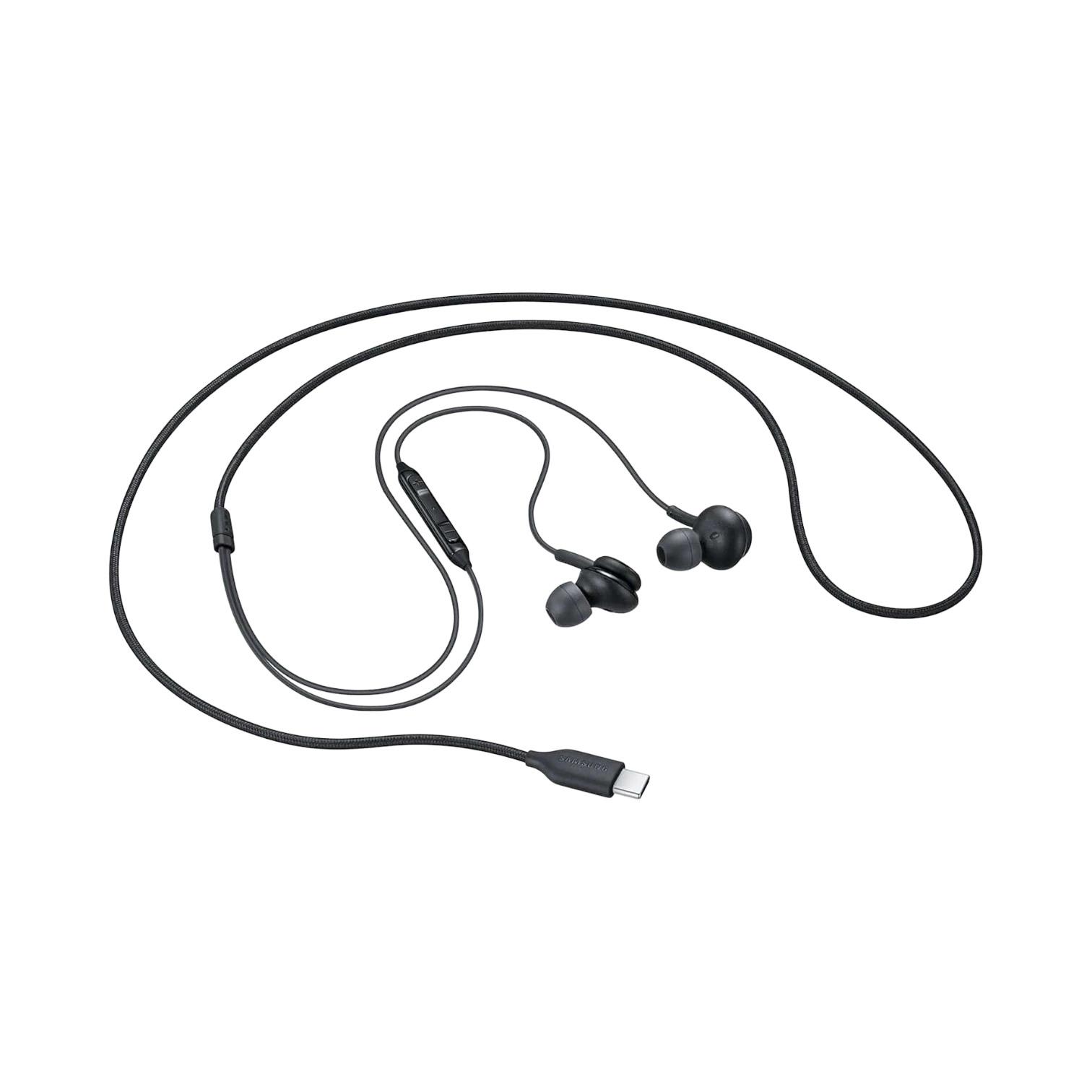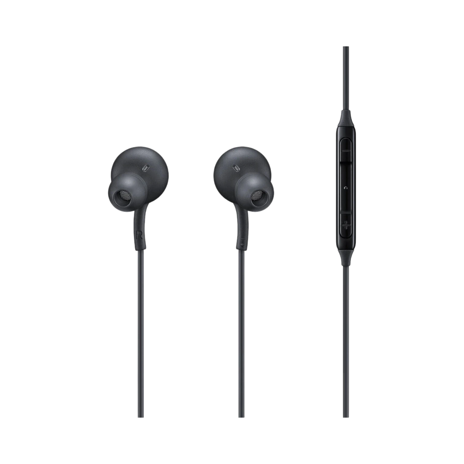 The Samsung EO-IC100BBEGUS is a pair of corded Type-C earphones designed for devices with USB-C ports, delivering clear and balanced sound through a built-in digital-to-analog converter (DAC). Tuned by AKG, these earphones offer rich audio quality that surpasses traditional 3.5mm headphones, making them a strong choice for users seeking premium sound without extra adapters. Their ergonomic design and included ear tips ensure comfort and a secure fit for various ear shapes, while the tangle-resistant fabric cable adds convenience for everyday use.