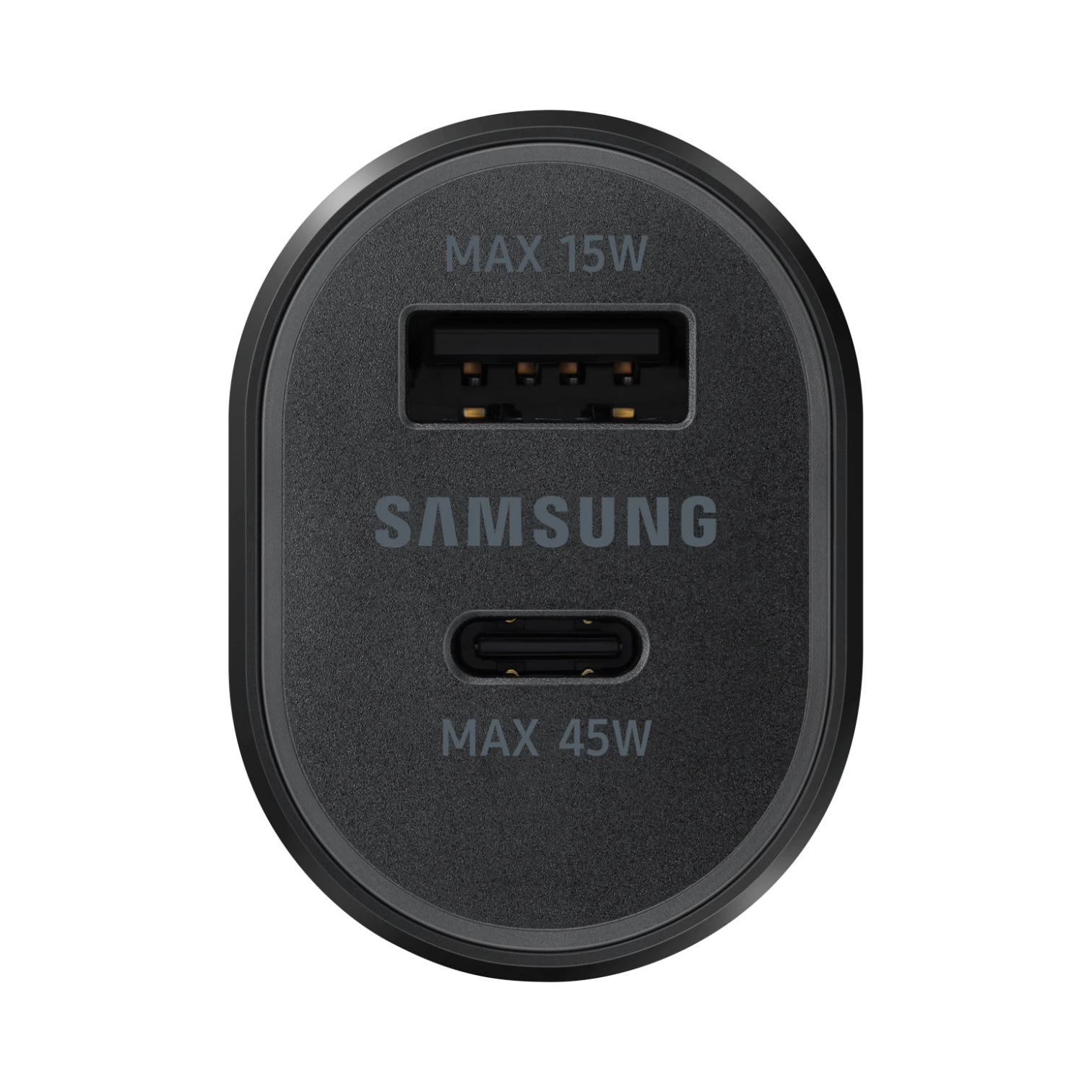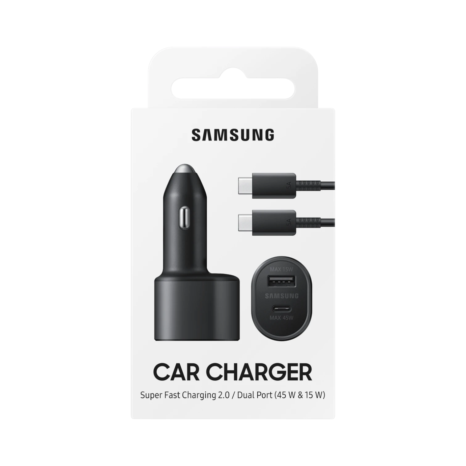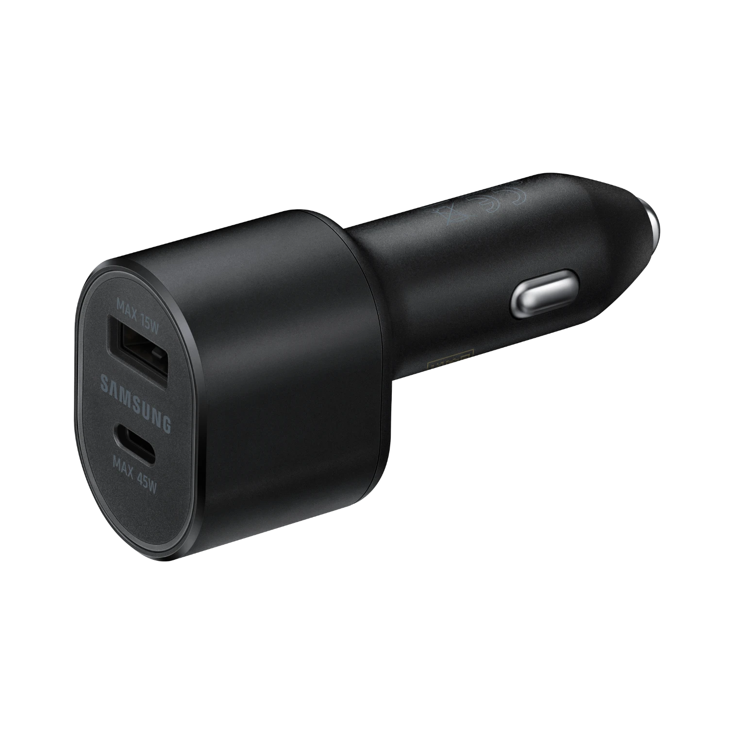 The Samsung EP-L5300XBEGWW is a dual-port car charger designed to deliver fast and reliable power to your devices while on the road. It features a USB-C port capable of delivering up to 45 W, suitable for quickly charging flagship smartphones or topping off lightweight laptops, alongside a USB-A port that provides 15 W for a second device. This charger supports multiple fast charging standards including Power Delivery, Quick Charge, and Samsung Adaptive Fast Charging, ensuring compatibility with a wide range of phones, tablets, wearables, and portable gaming devices.