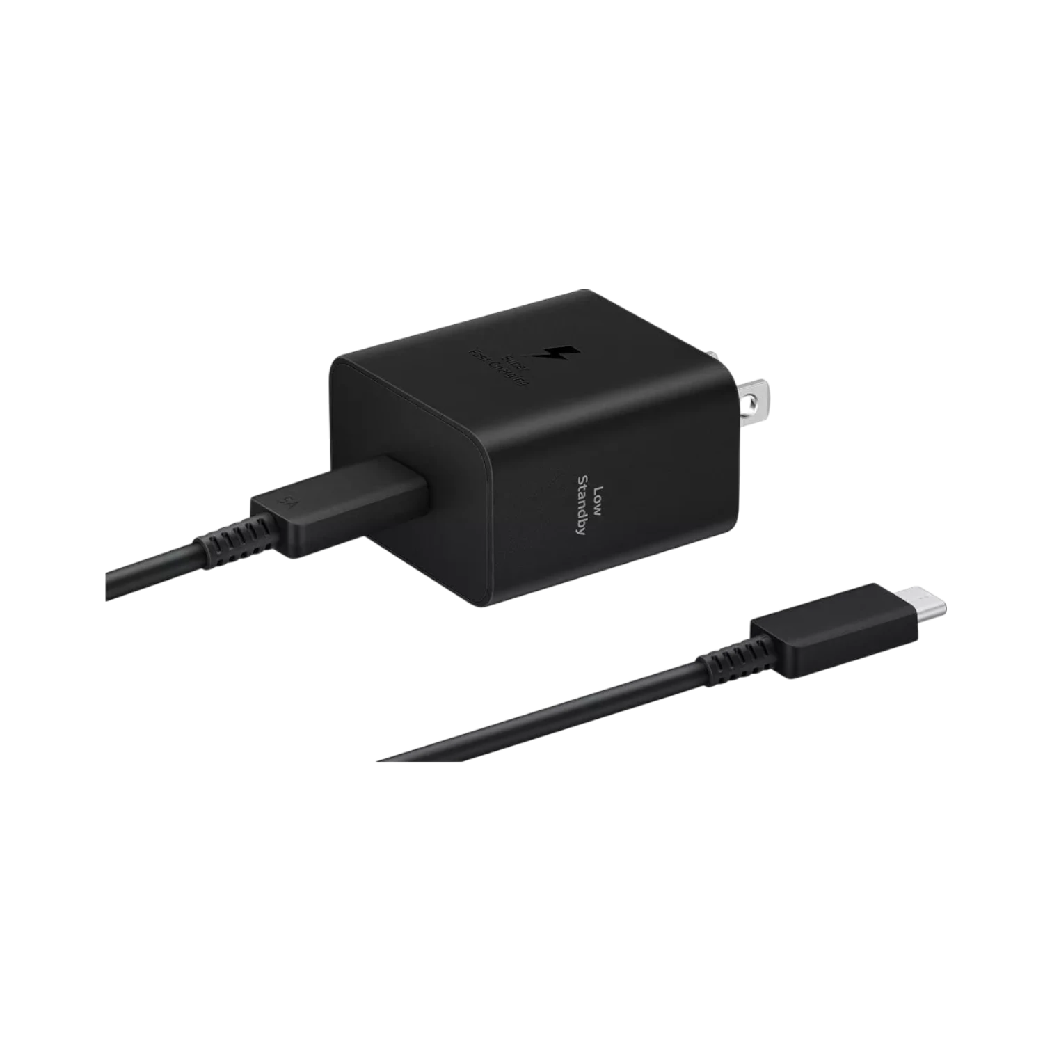 The Samsung EP-TA845XBEGUS is a 45W USB-C wall charger designed to deliver Super Fast Charging using the USB Power Delivery standard. It provides up to 3 amps of current, significantly reducing charging times for compatible phones, tablets, and laptops. This charger is ideal for users who need a reliable and efficient power source at home, in the office, or while traveling.
