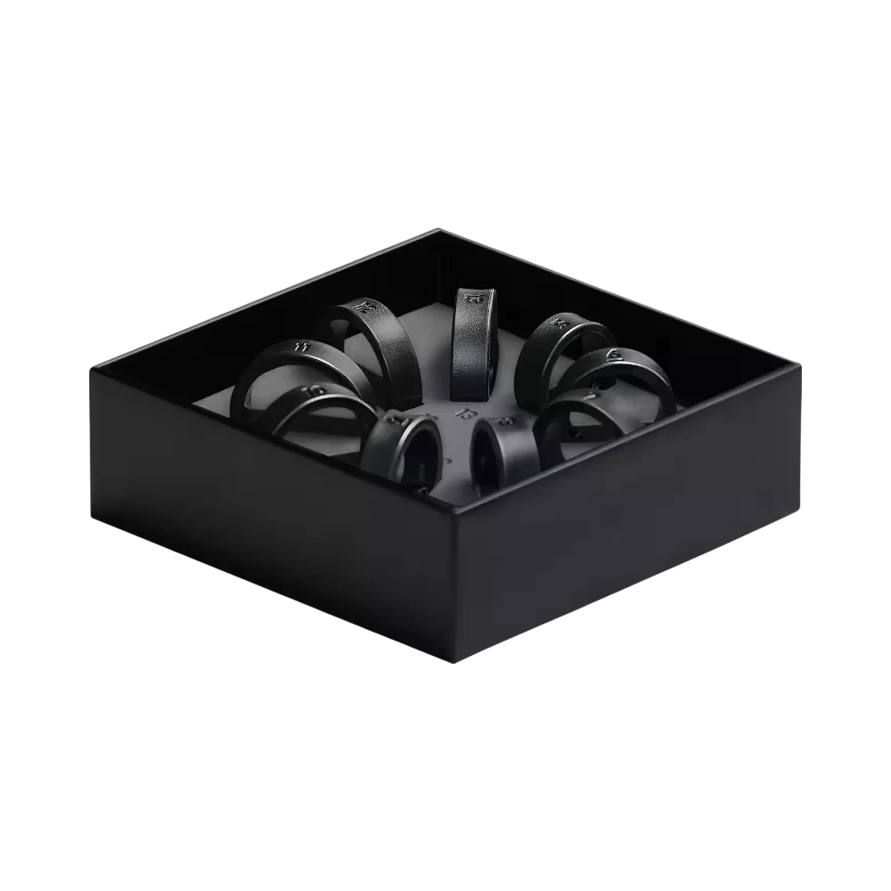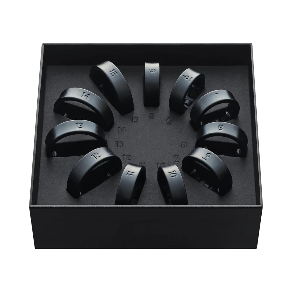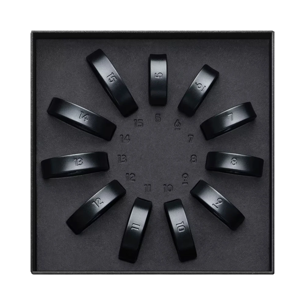 The Samsung ET-YQ510KBEGUS is a ring sizing kit designed to help you find the perfect fit before purchasing a Galaxy Ring. It includes eleven sample rings covering US sizes 5 through 15, allowing you to test comfort and fit during daily activities and overnight wear. Each ring features interior notches that show where the Galaxy Ring’s health sensors will sit, ensuring accurate positioning for reliable tracking.