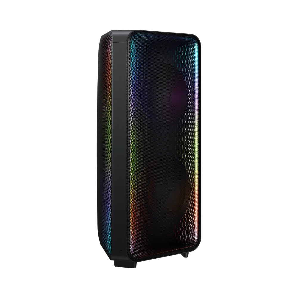 The Samsung MX-ST50B/ZA is a sound tower designed to deliver powerful and immersive audio with 240 watts of bi-directional sound that fills both indoor and outdoor spaces. Its built-in battery offers up to 18 hours of wireless playback, allowing you to enjoy music without being tethered to a power source. The speaker’s IPX5 water resistance rating ensures it can withstand splashes and light rain, making it suitable for poolside gatherings or outdoor adventures. Dynamic LED lights pulse to the beat, adding a lively visual element to your events.